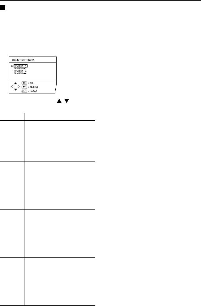 Языки телетекста См. таблицу в разделе “ЯЗЫК ТЕЛЕТЕКСТА” на стр. 30.