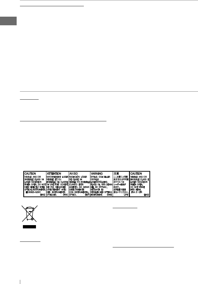 3. CAUTION: (For U.S.A.) Visible and/or invisible class II laser radiation when open. Do not stare