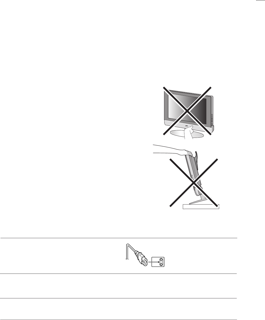 or lean against the TV. Doing so may cause the TV to fall over and lead