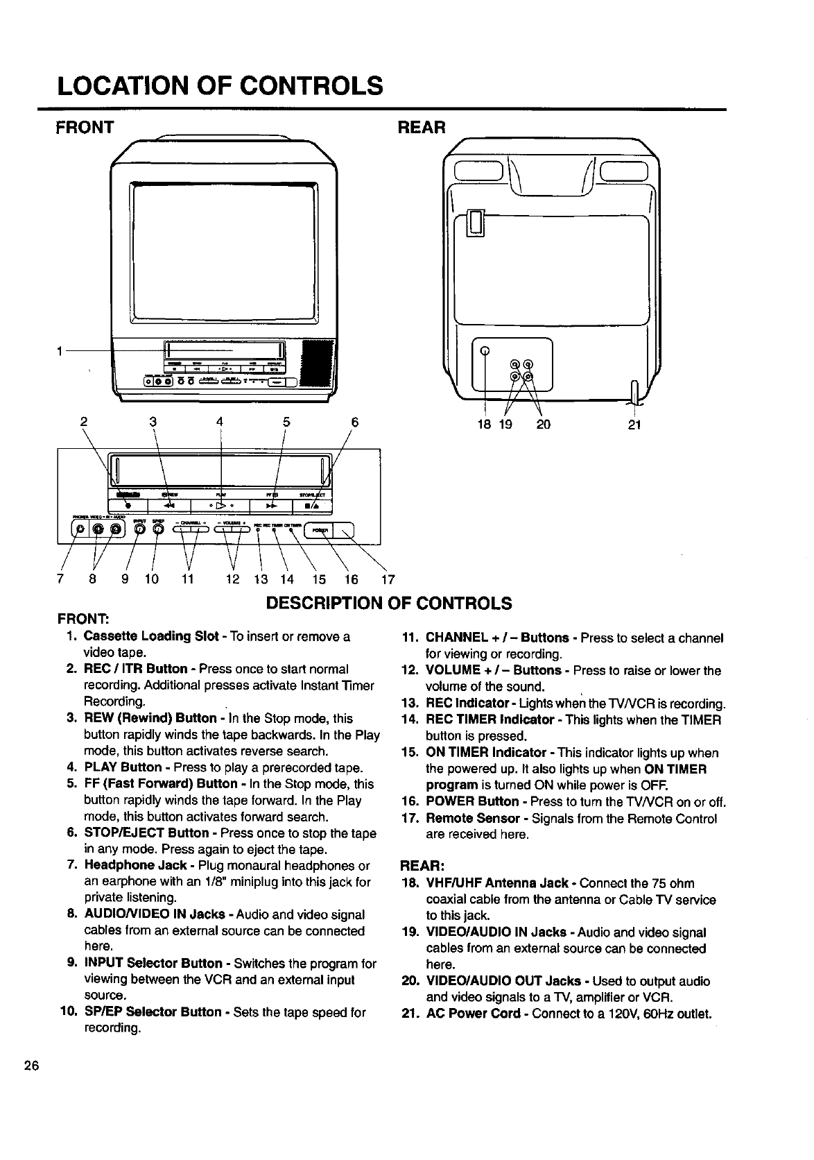 18. VHF/UHF Antenna Jack -Connectthe 75 ohm