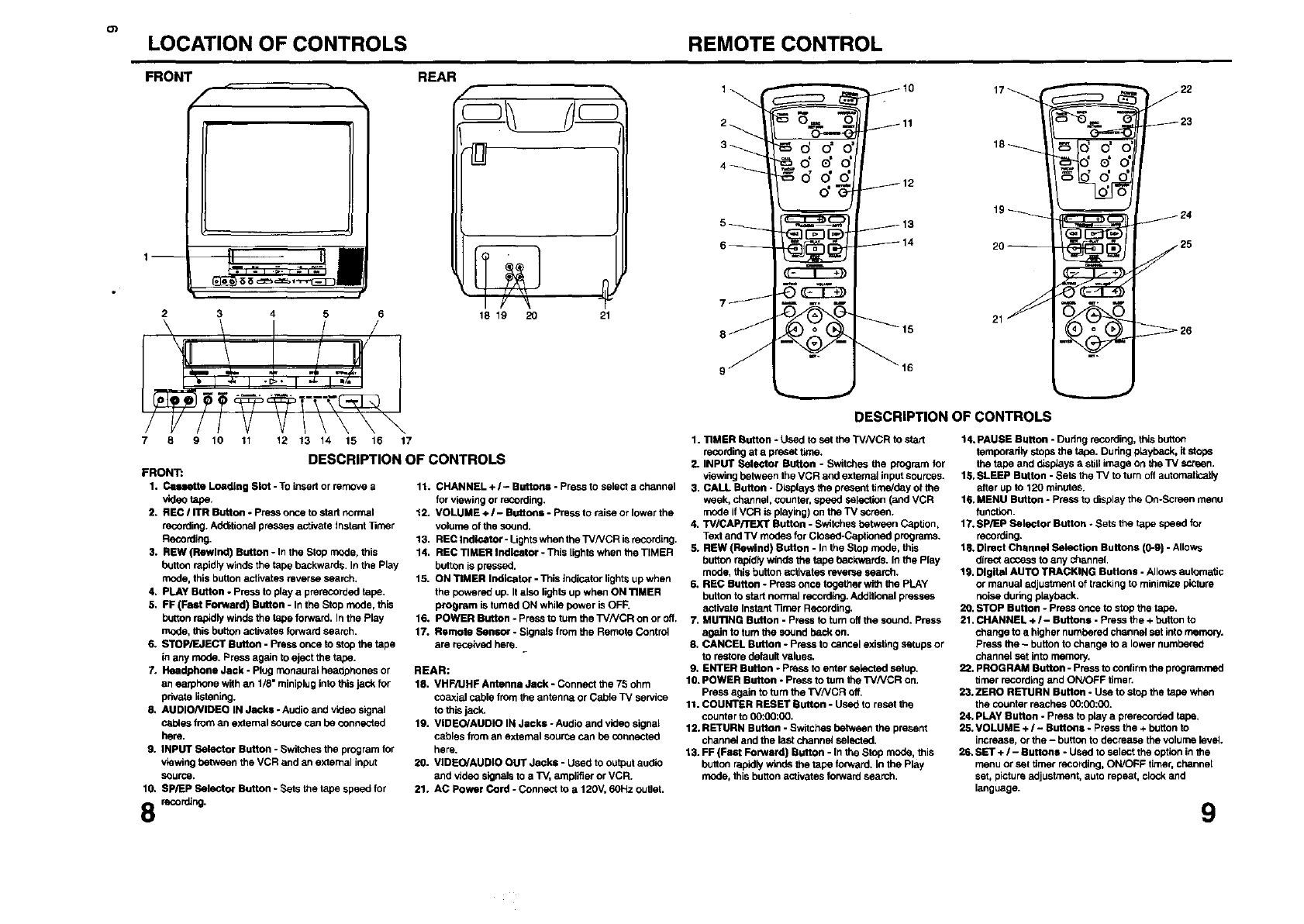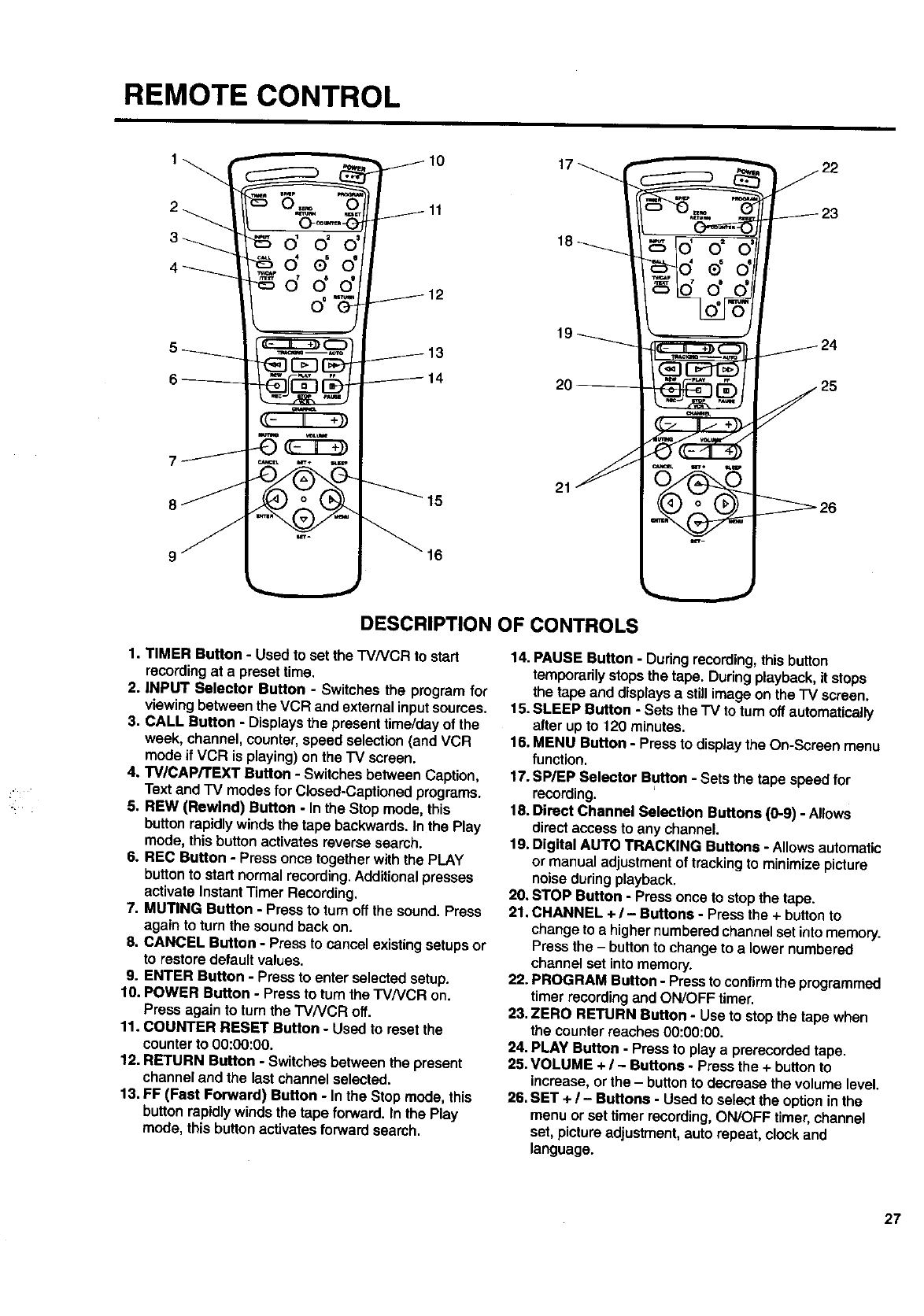 16. POWER Button - Pressto turn theTV/VCR onor off.