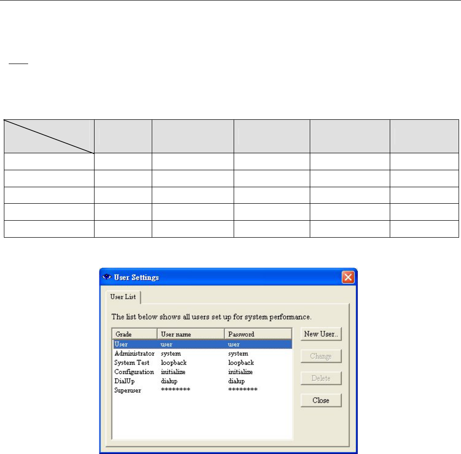 ϡNote: The higher the grade (with different login account), the more the function is allowed. Superuser is the