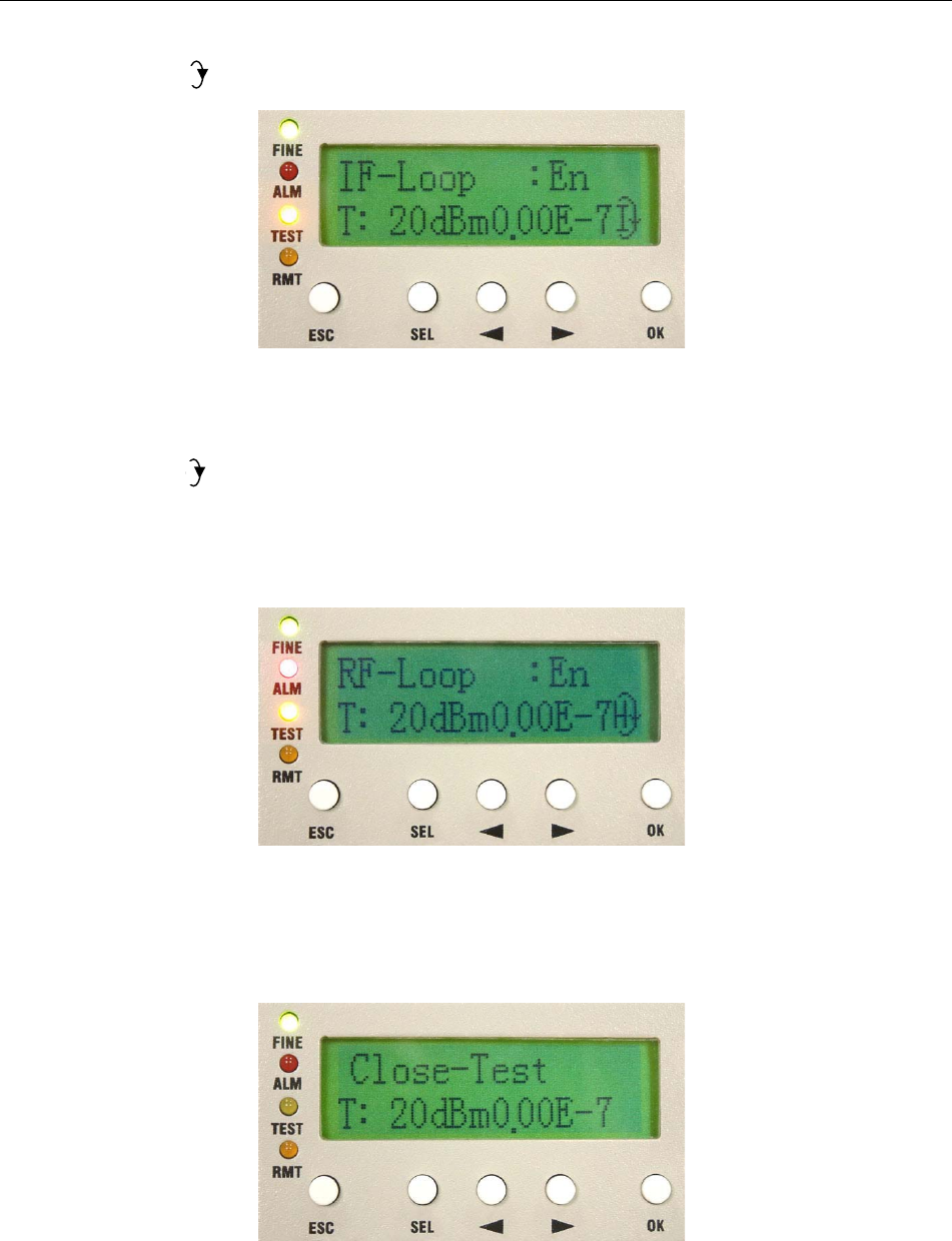 Perform IF Loopback at the IF interface for the convenience of testing the IDU’s stability. Press OK. Use the