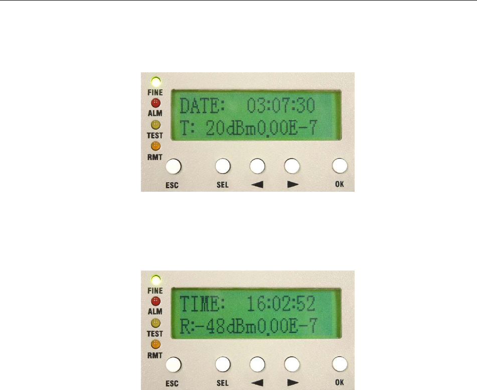 In RF Loopback, appears at the right bottom of the LCD. The local’s and remote’s TEST led gives an