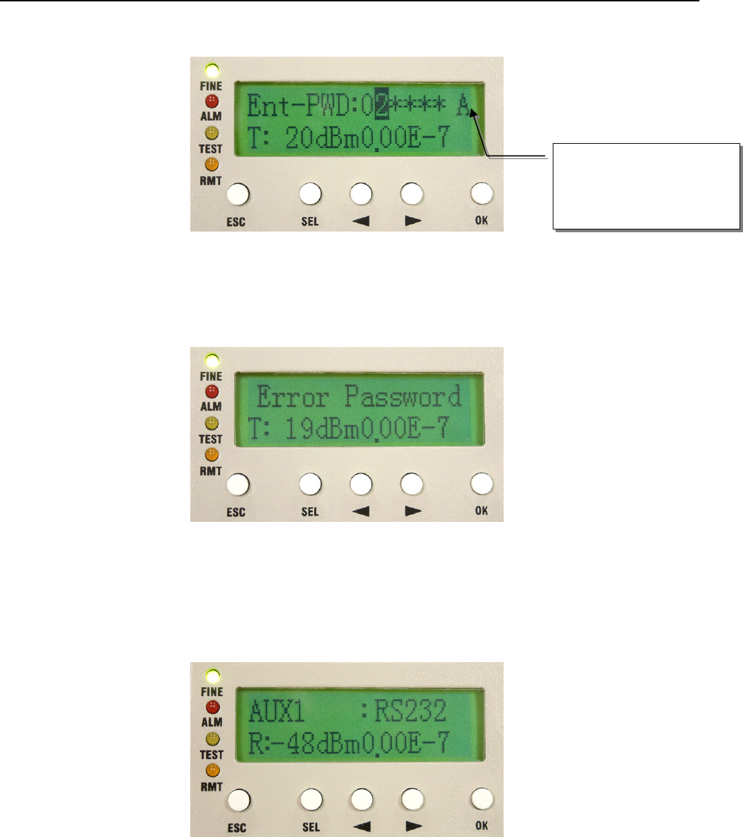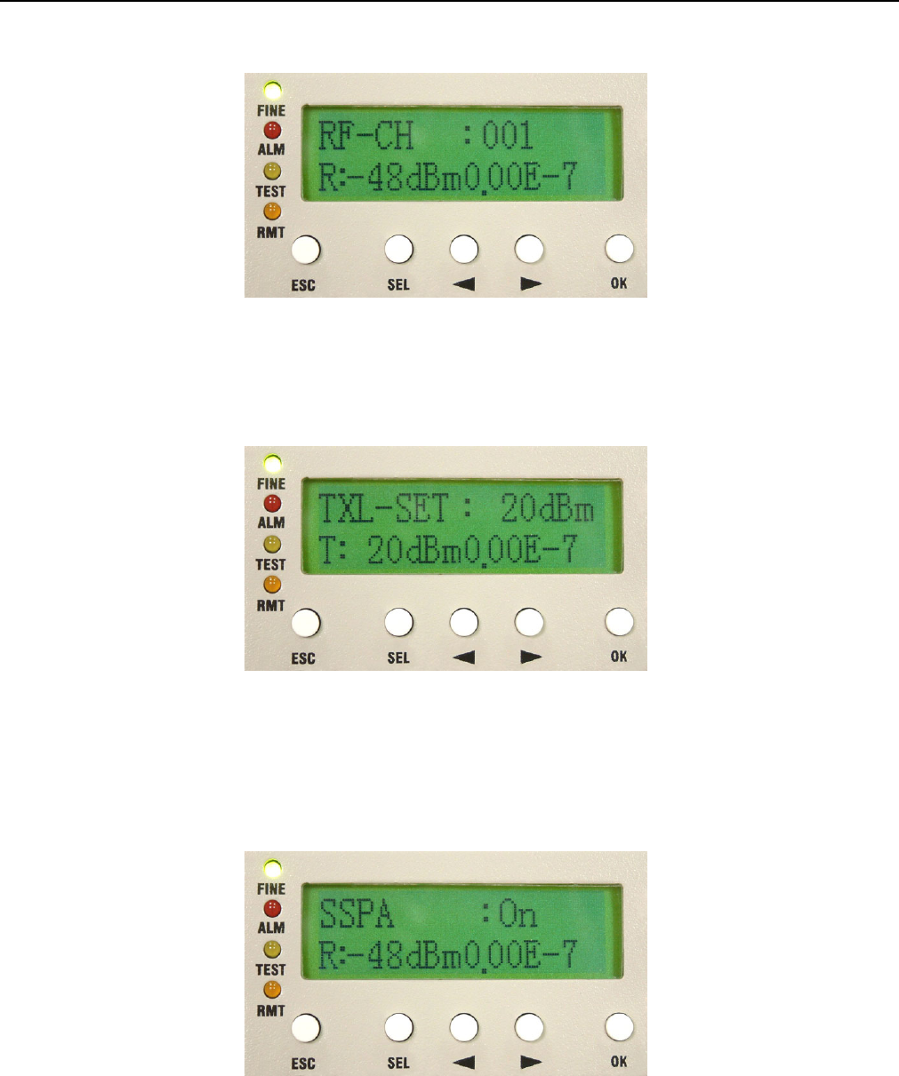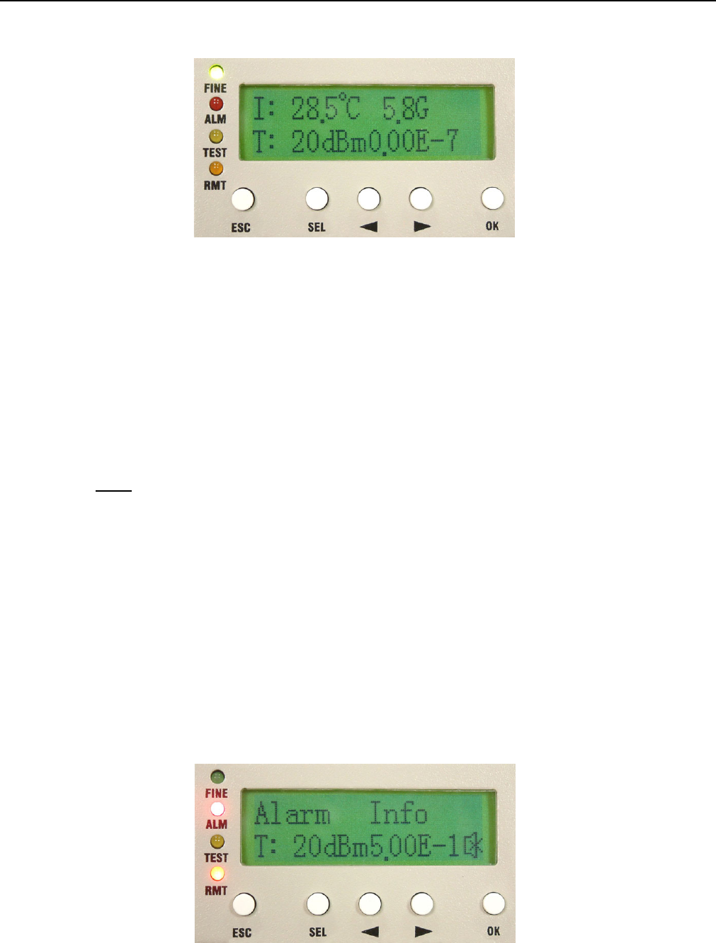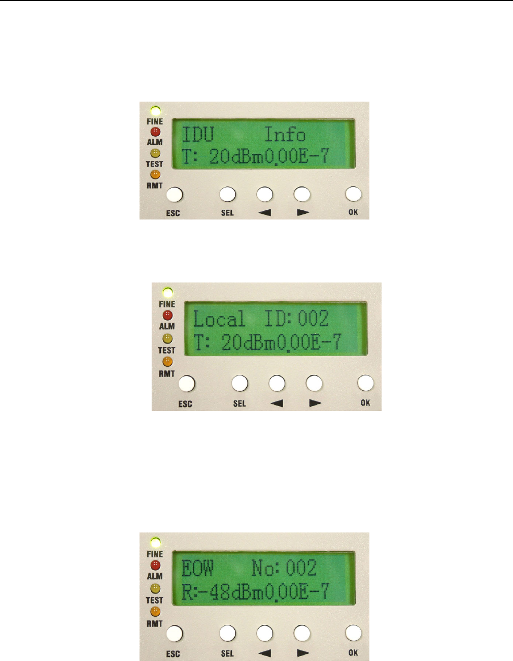 appear at the right bottom of the LCD. Remote end’s TEST led will turn orange too with “T” display on the front