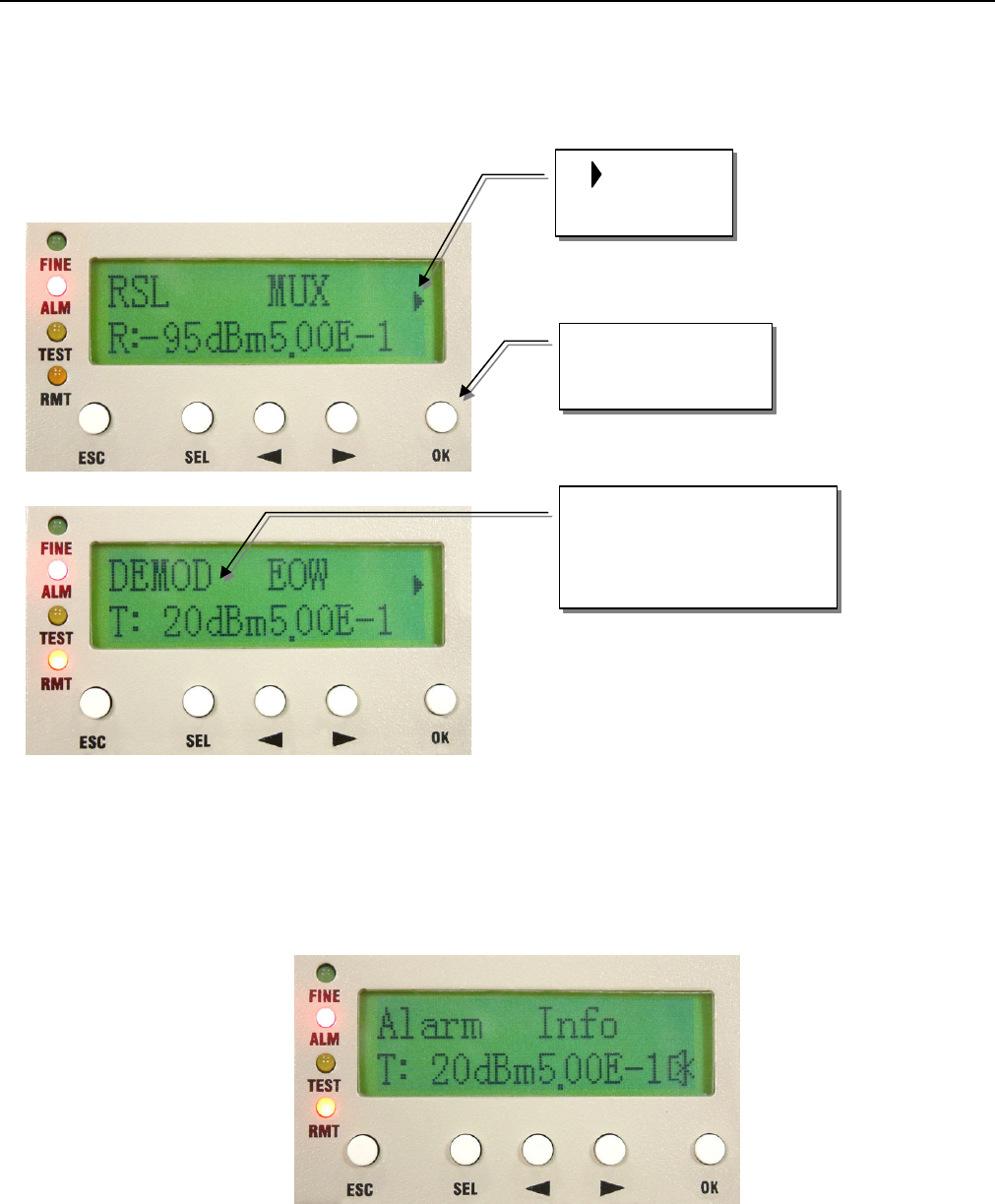 Right/Left button to select the T1~Tn tributary of the remote E1 interface. Press OK. The Right/Left button is