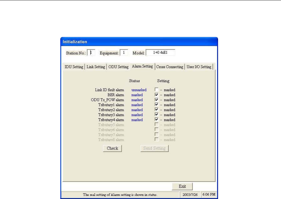 Under IF Loopback, a self-detection test on any IDU components malfunction is carried out. This function setting is