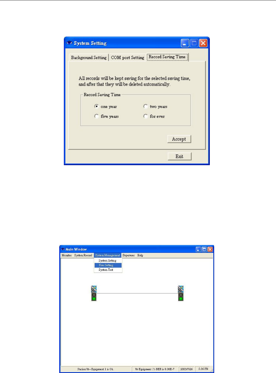 In COM port Setting tab, you can select a COM port as the communication port of NMS. Press Accept after