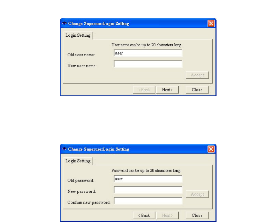 Edit User Name or Password: Click on User Name “user”. Press Change.