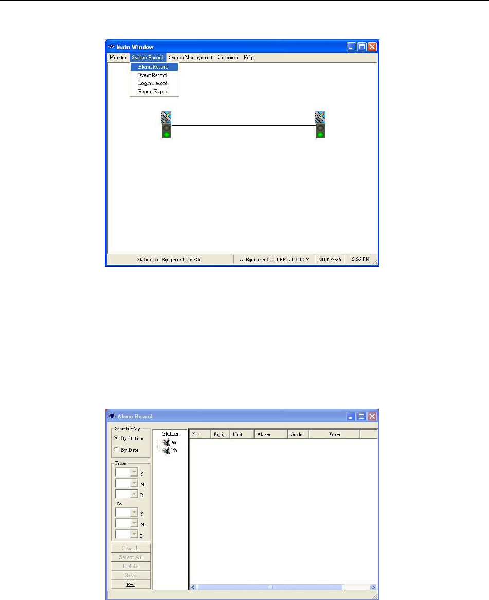 The following window appears: All the alarm record in the network will be recorded here. The levels of alarm are