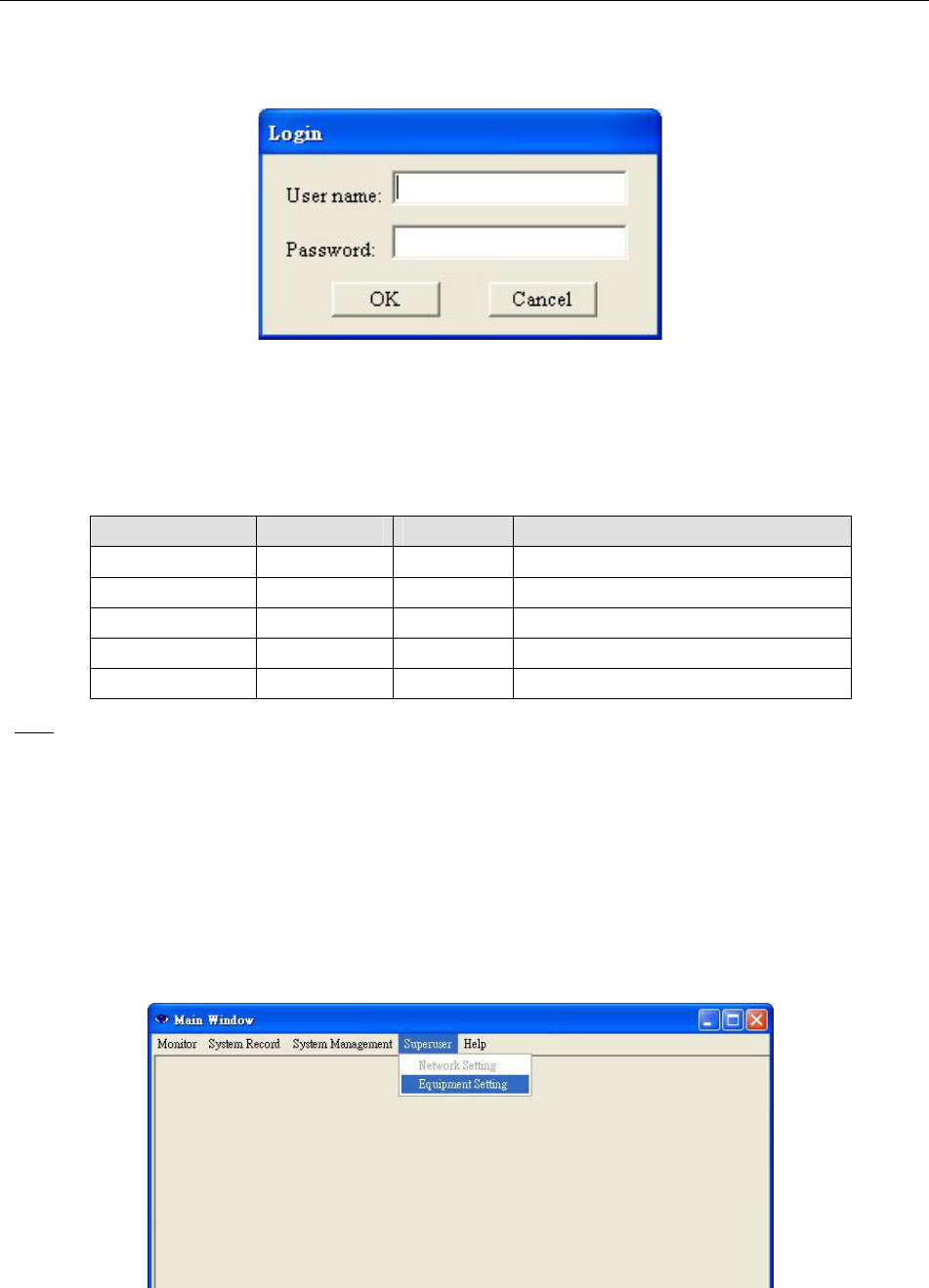 ϡNote: The higher the grade (with different login account), the more the function is allowed. Superuser is the