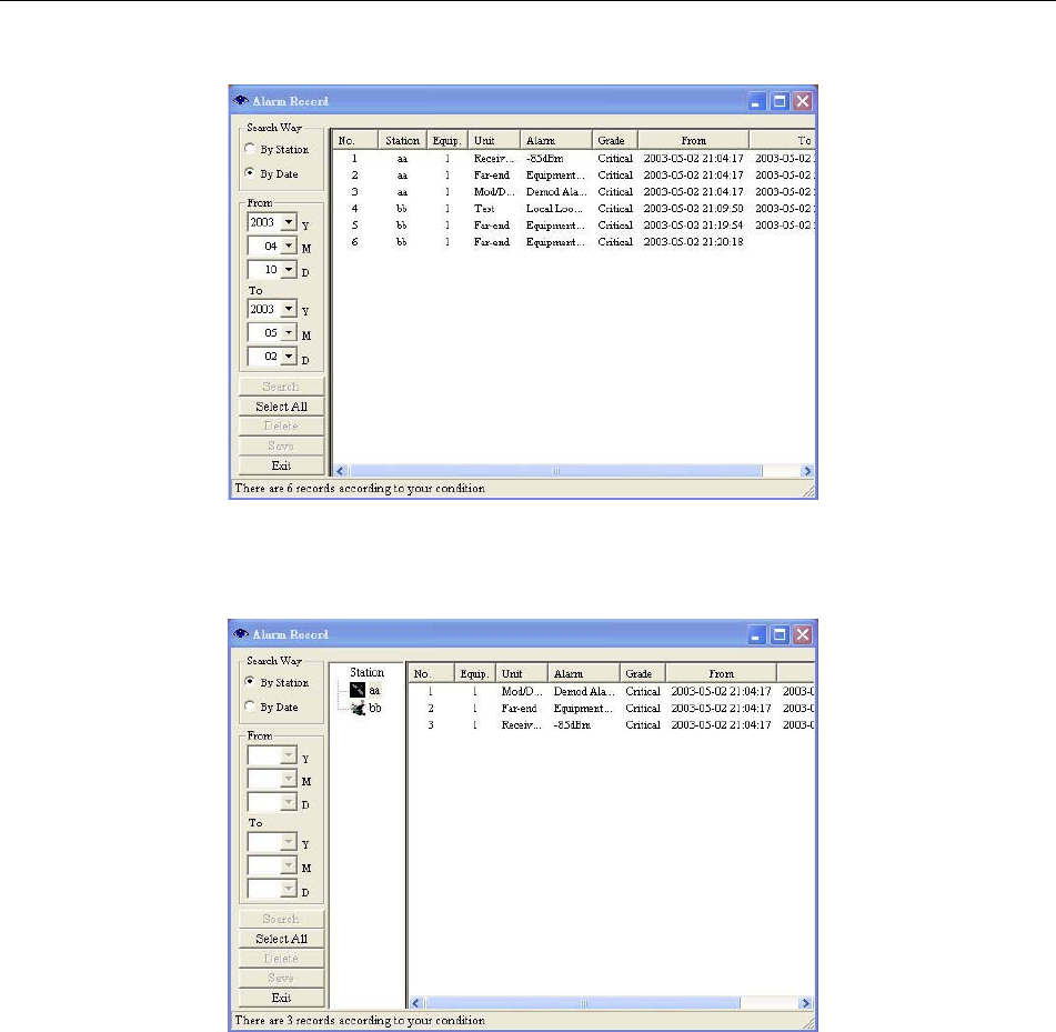Alarm record sorted by date: In Search Way, tick By Date,select From and To, press Search.