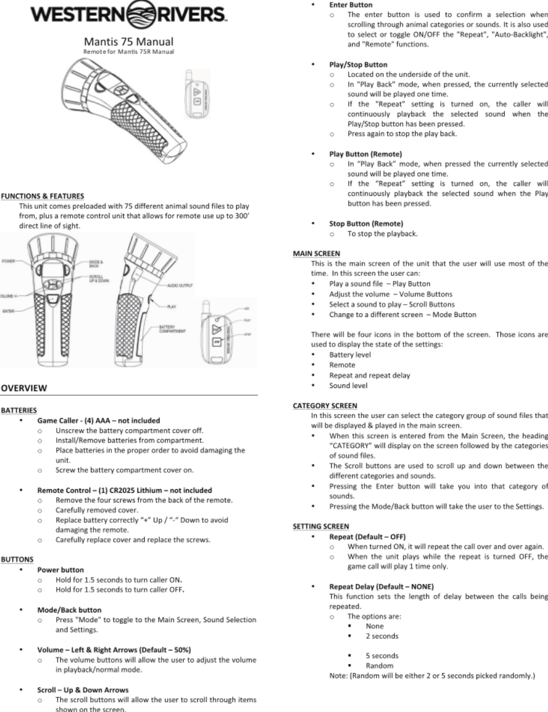 K Mark GL-WRCGCREM Remote for Mantis 75R User Manual Manual