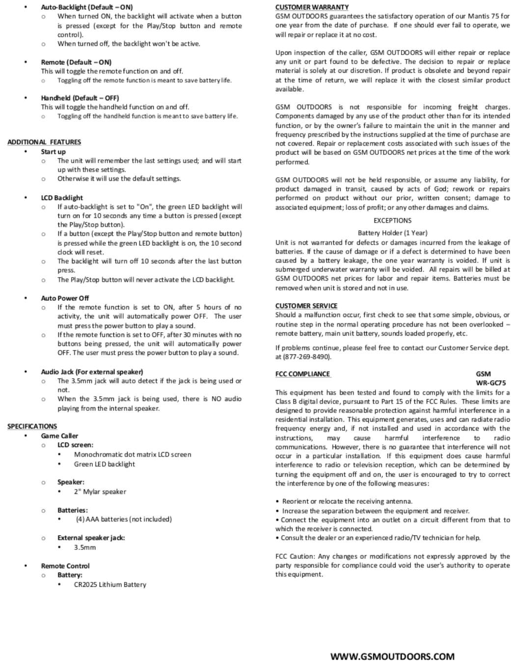 K Mark GL-WRCGCREM Remote for Mantis 75R User Manual Manual