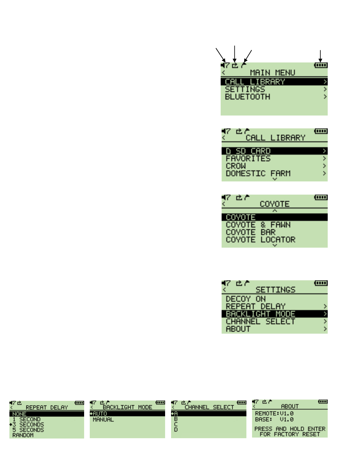 call. Pressing the back button will return to the Main Menu. Holding enter on a saved
