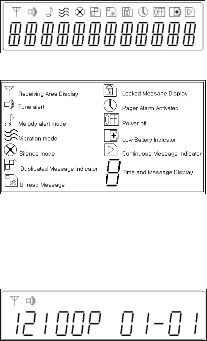 : In power off mode, press the Function Button(■) to turn to pager on. Pager shows all