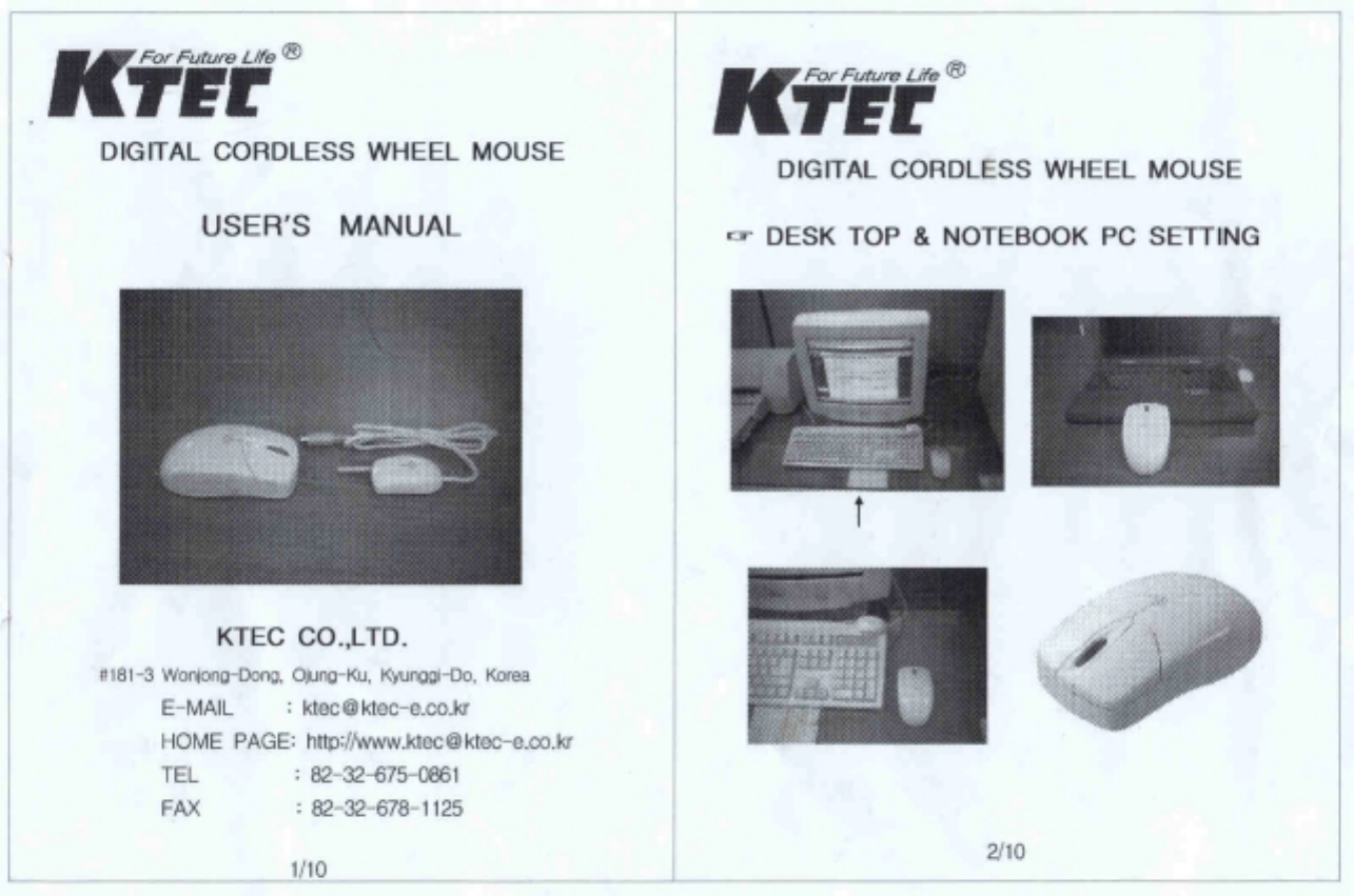 K tec KTM-2001T Digital Cordless Wheel Mouse User Manual