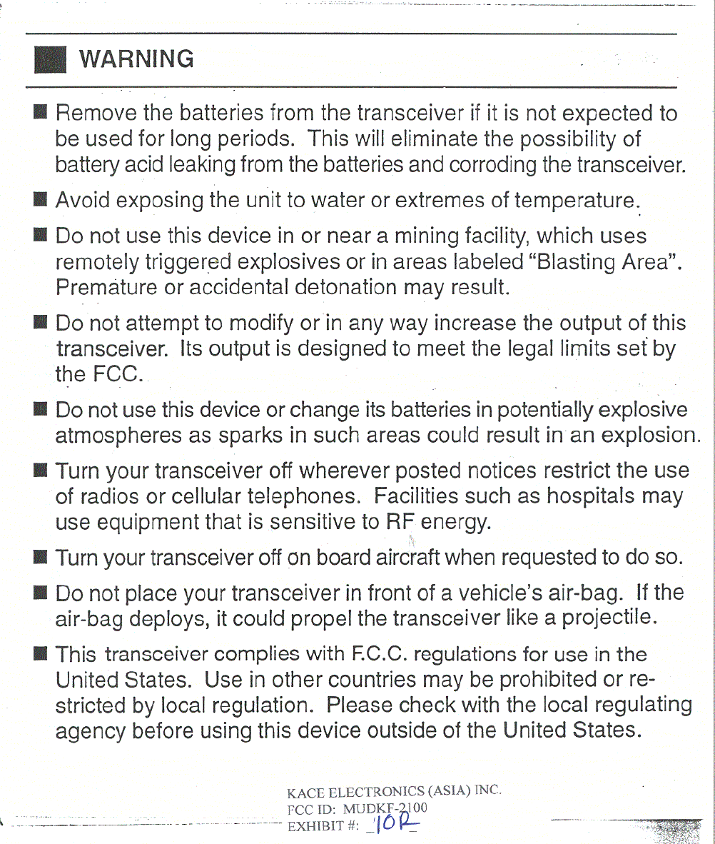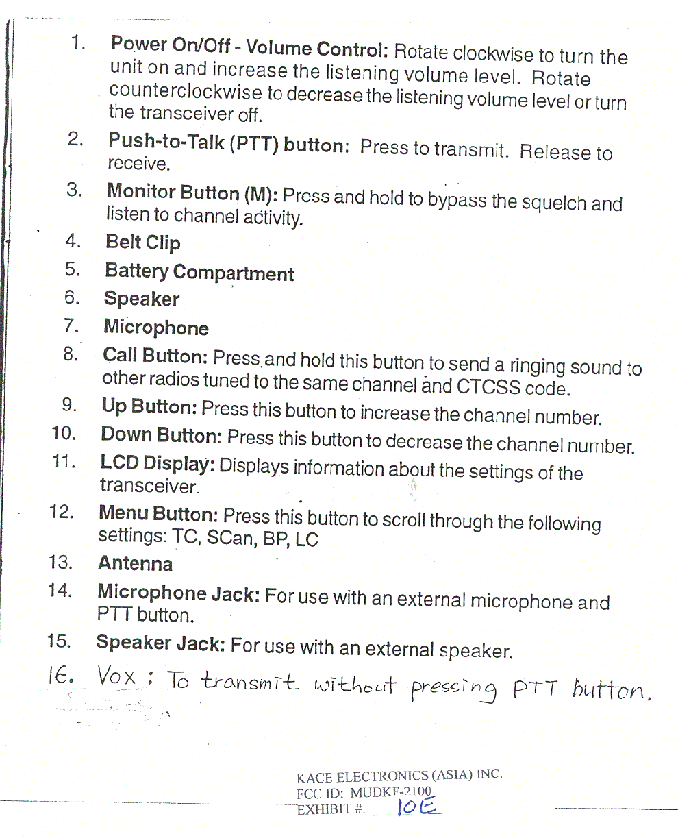KACE Electronics Asia Inc Users Manual