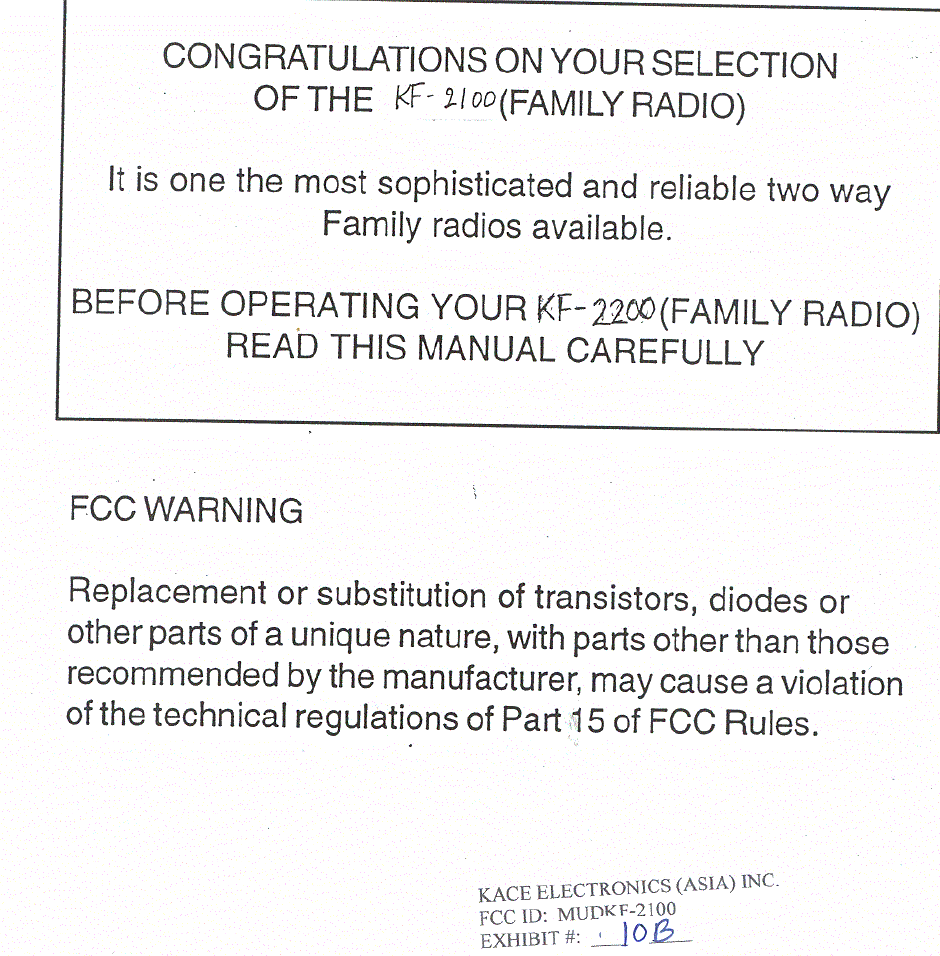 KACE Electronics Asia KF-2100 User Manual