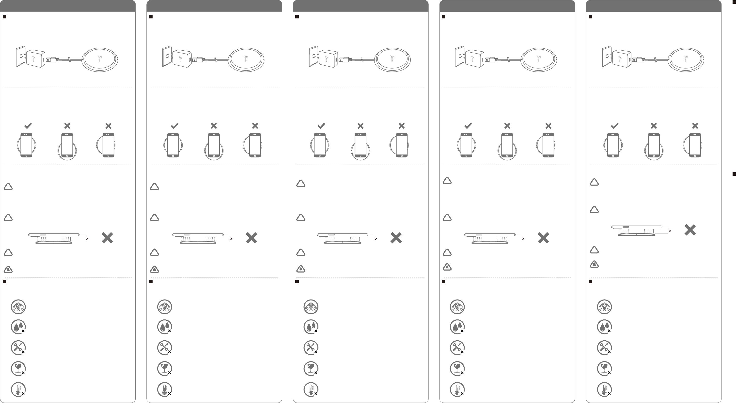 請勿將雜物如金屬物質、磁鐵與磁條卡放置於行動裝置與無線充電器之