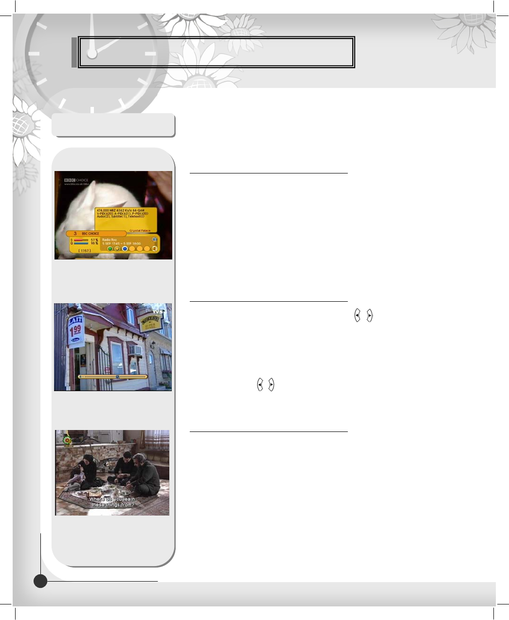 Poor picture quality Check the signal level, if this is low then try adjusting the