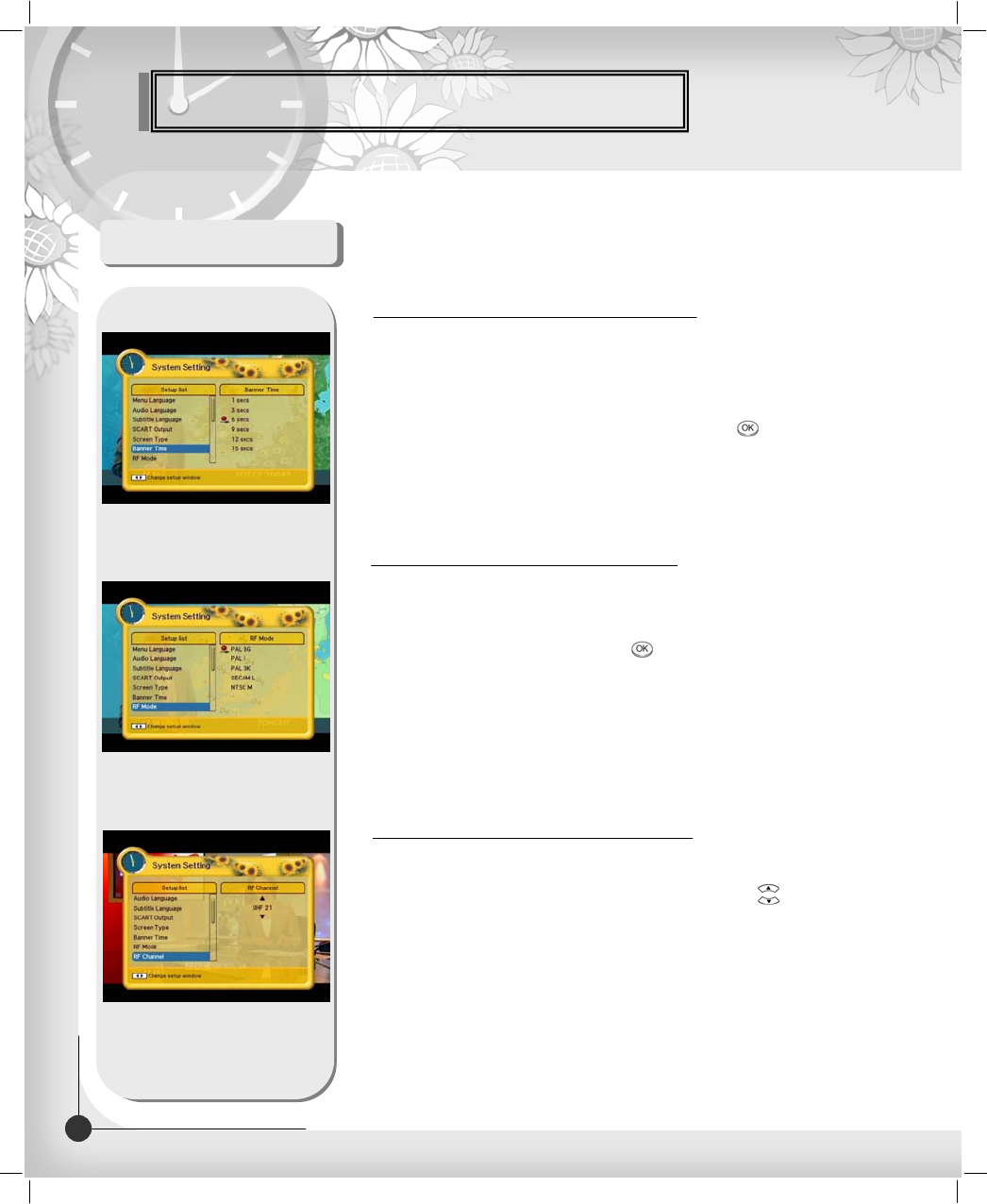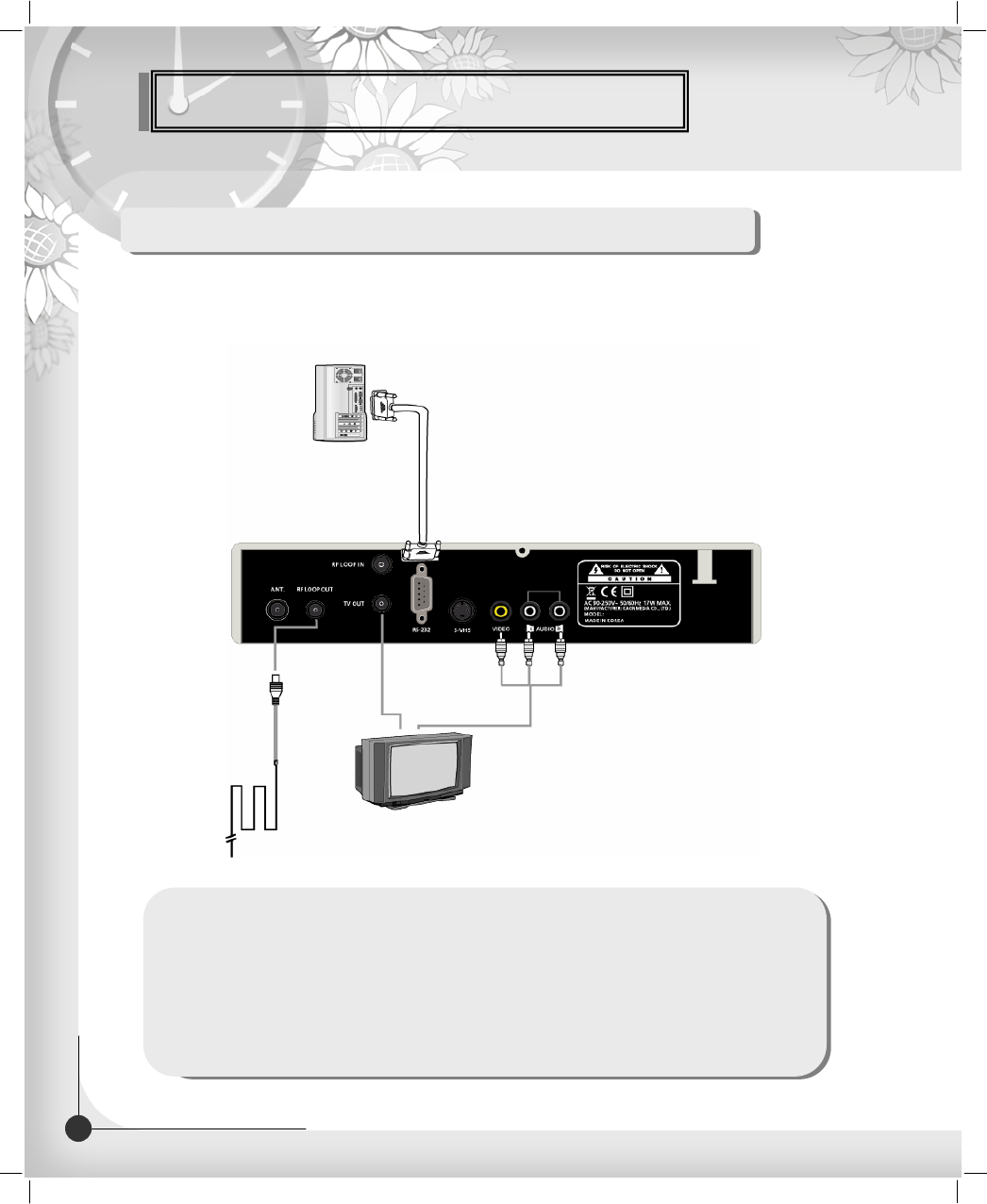 PLL type UHF(CH 21~69) or VHF(CH 3~4) for the modulation