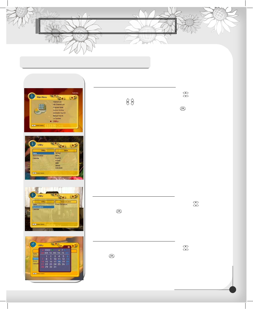 Select “Calculator" in the Utility menu with UP/DOWN( ) button and