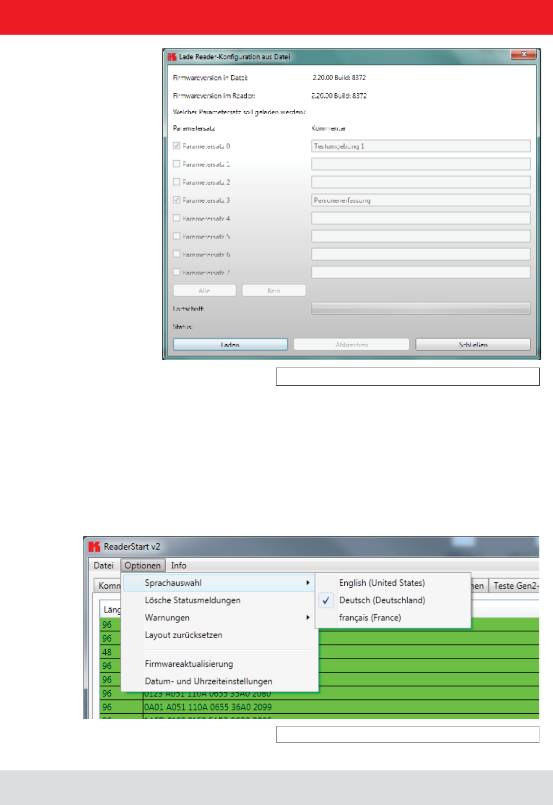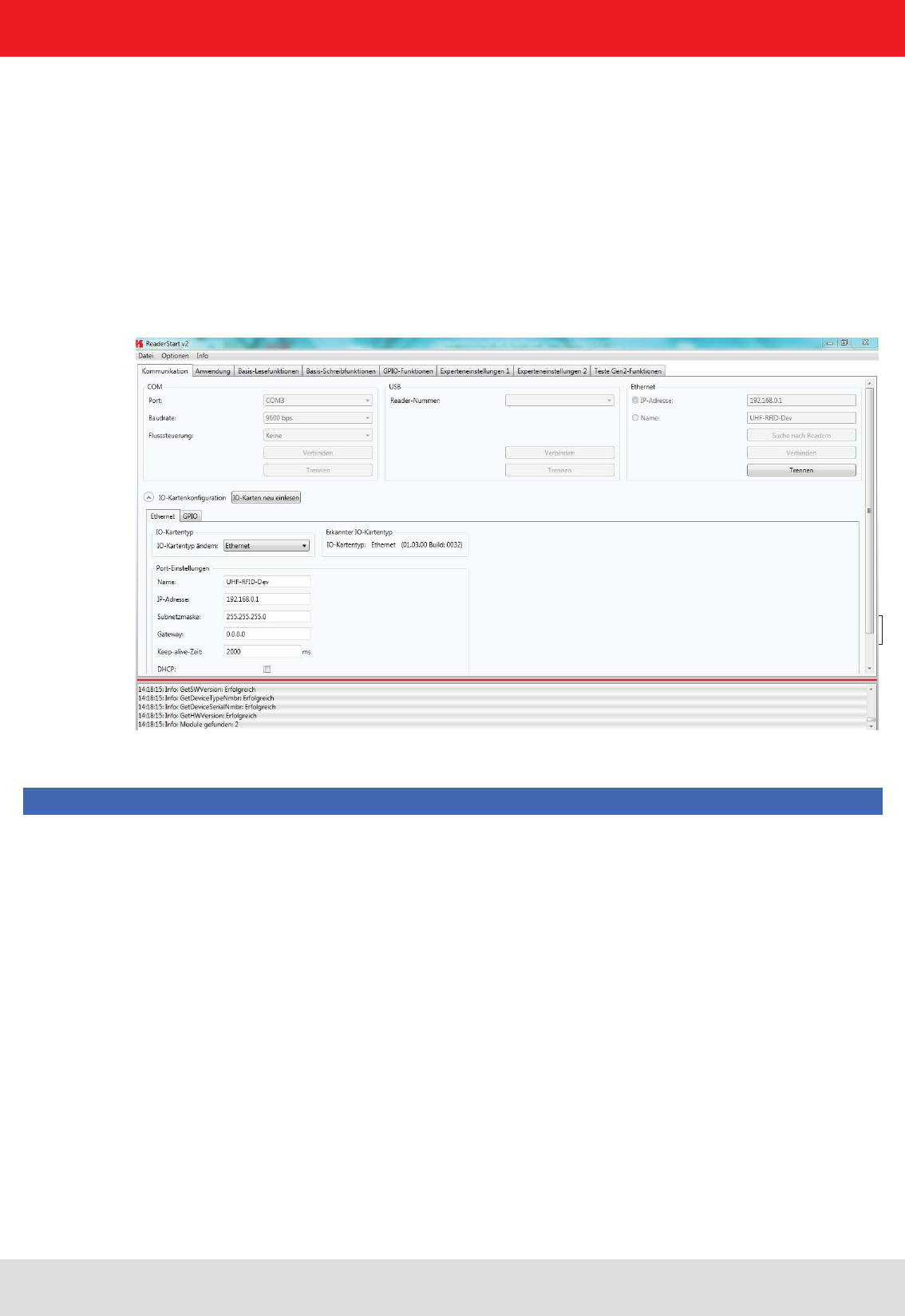 When the build process was successful, the program can be transferred to the reader. A possible way to transmit the