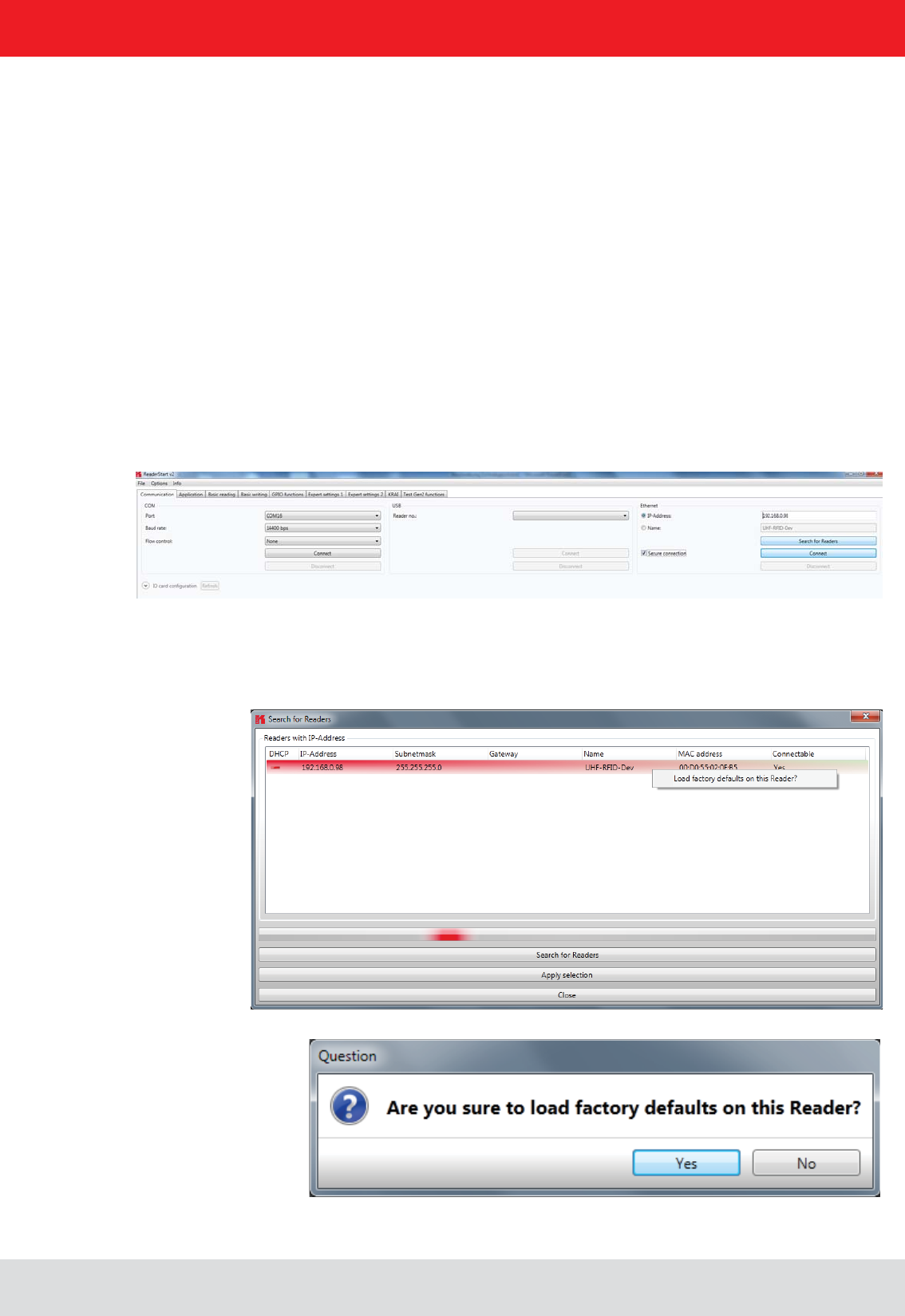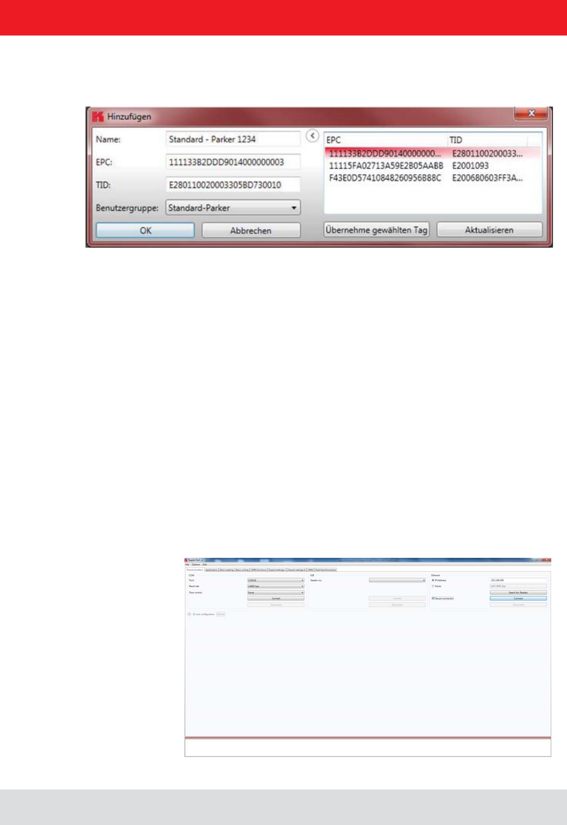 - Ethernet connection to the reader