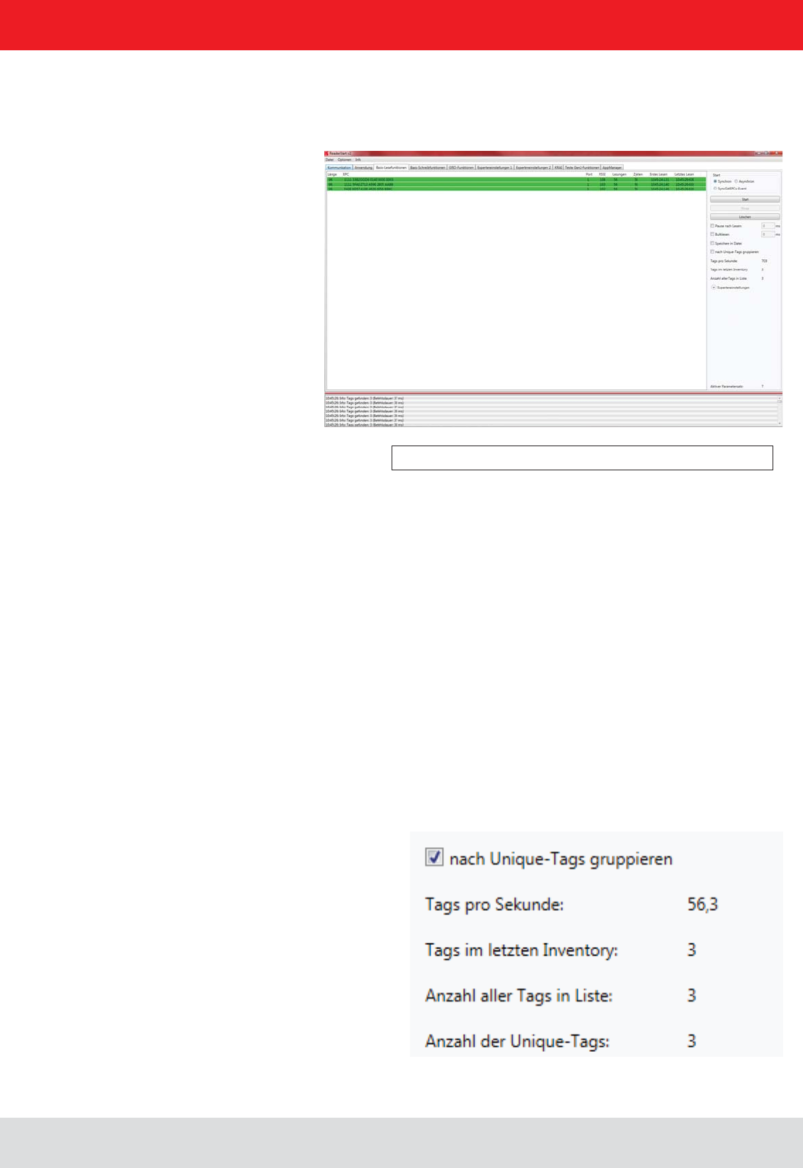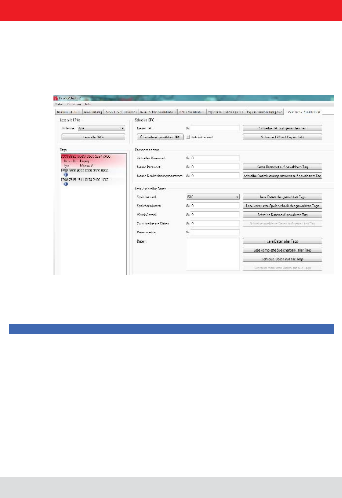 application that shows how the connection is established to the reader and how tags are read, GPIOs used and action
