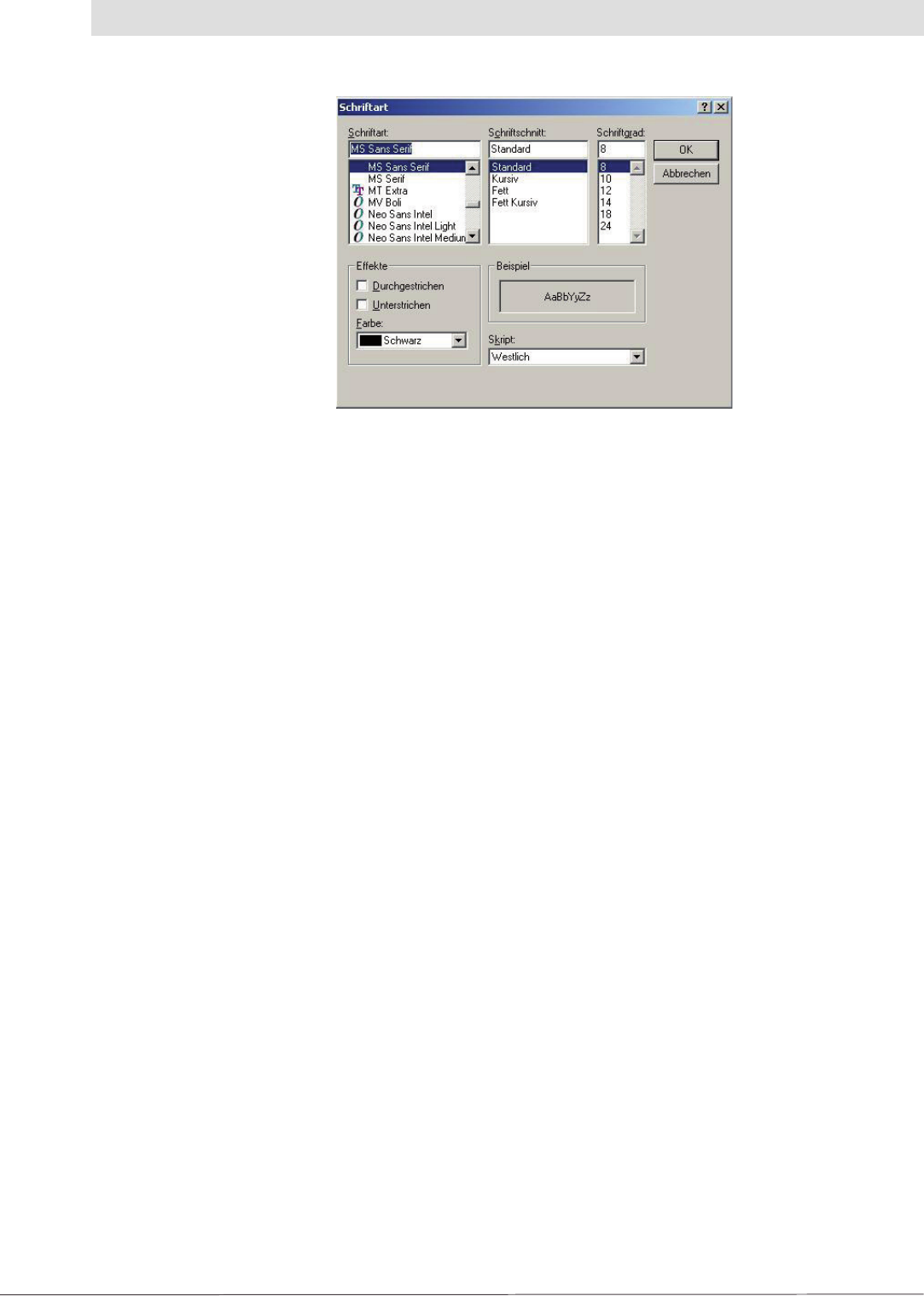 The following dialog box is displayed by clicking the “Schriftart EPCs lesen ändern” (Change read
