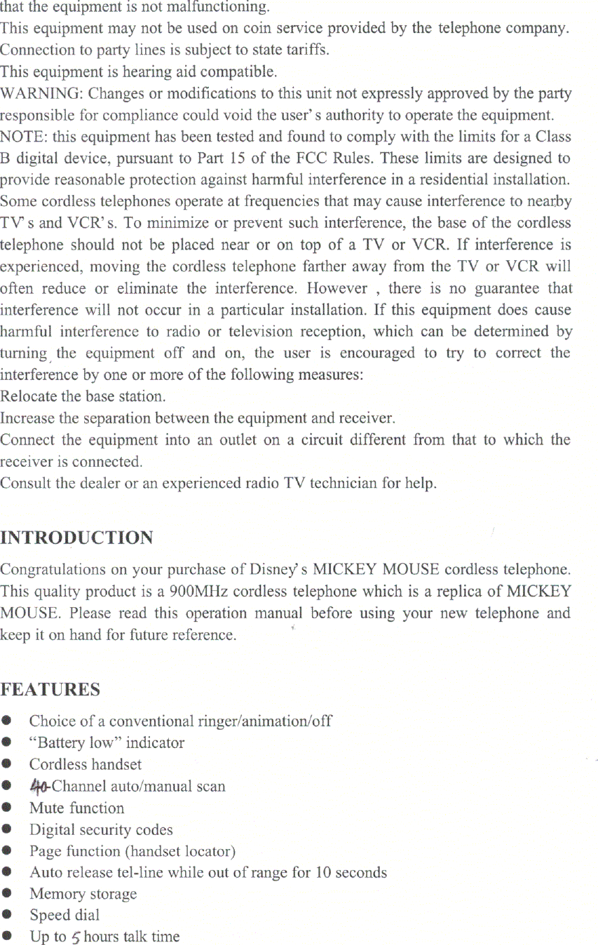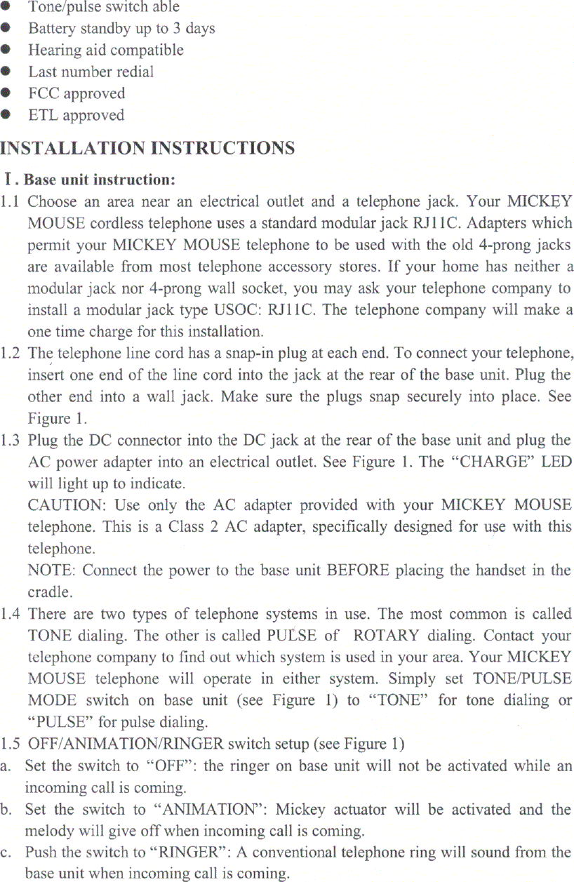 KCL Technology Ltd 900MHz Cordless Telephone users manual