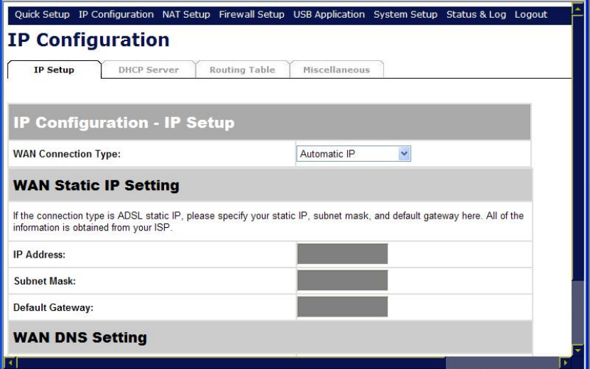 [Page 1] Select ADSL Static IP from the drop-down list.