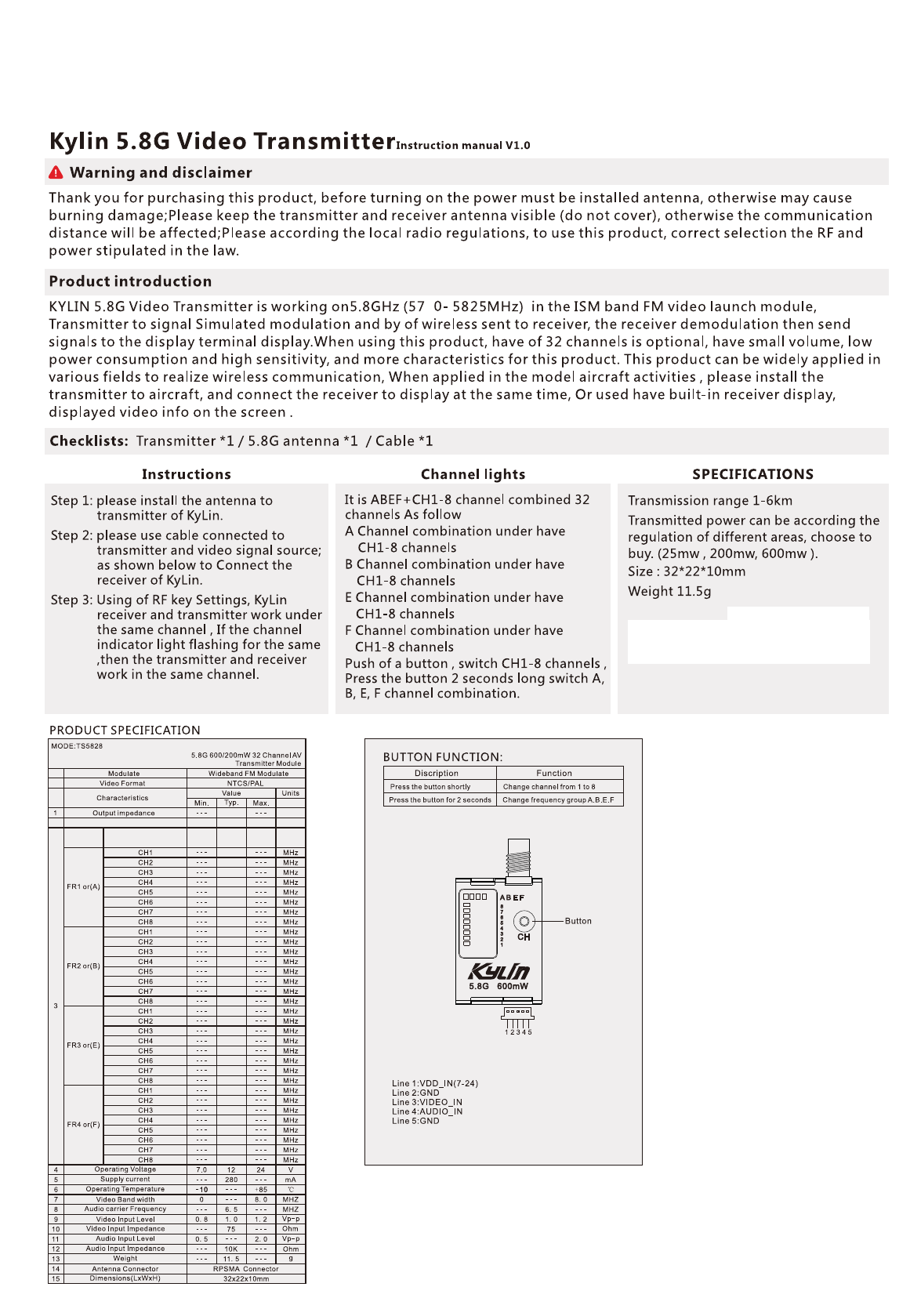 Shenzhen KDS Model Technologies Co., Ltd Video Transmitter