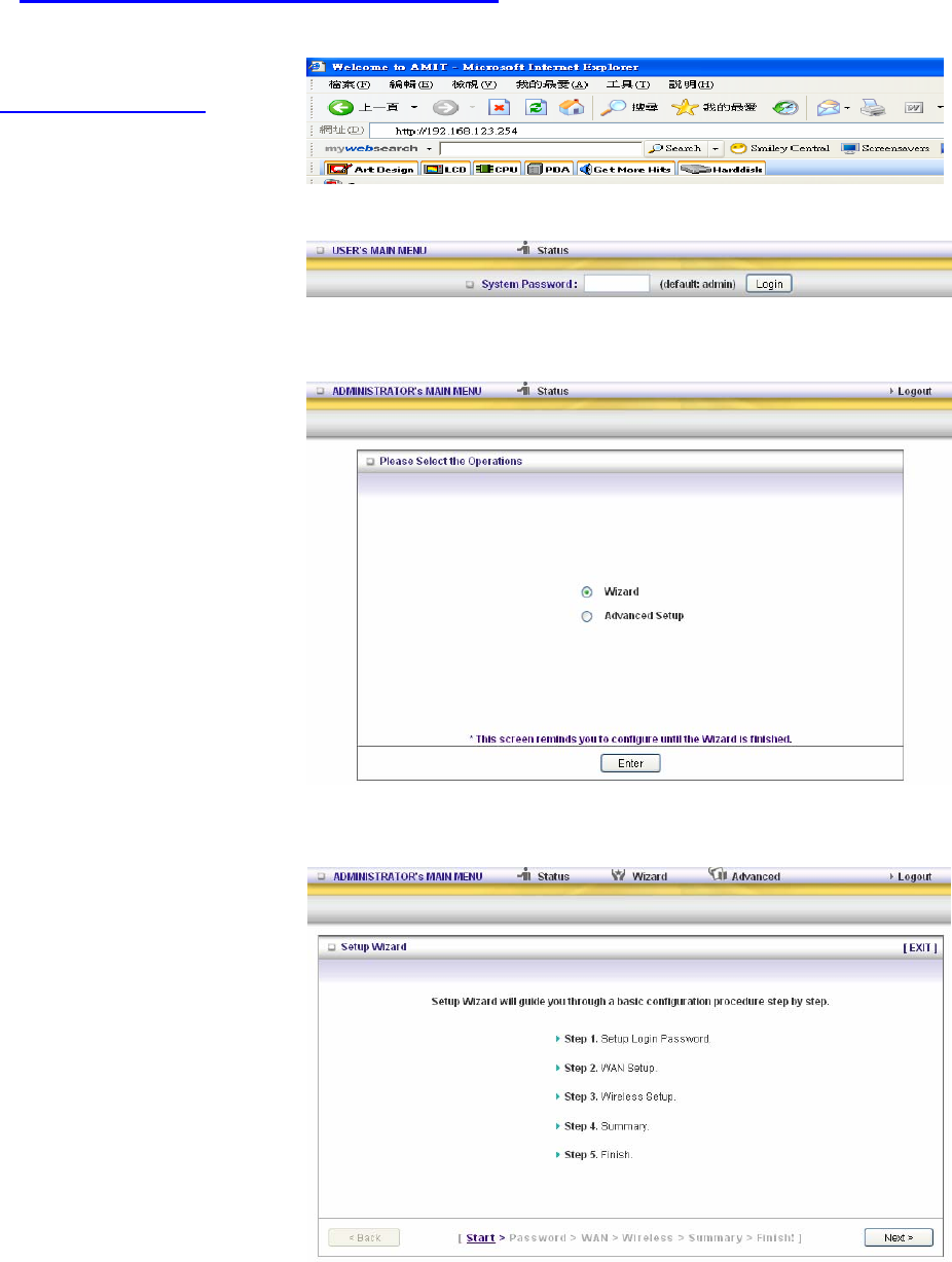 If yes, please execute Browser, like Mozilla and key 192.168.123.254 in address.