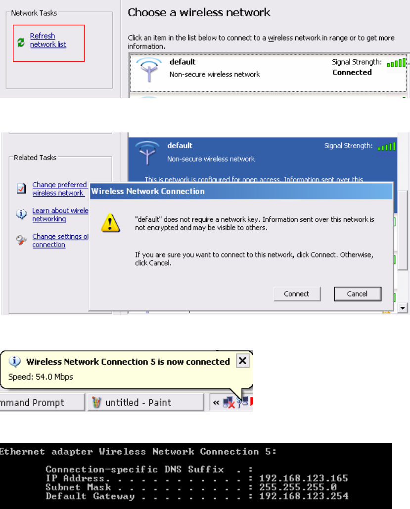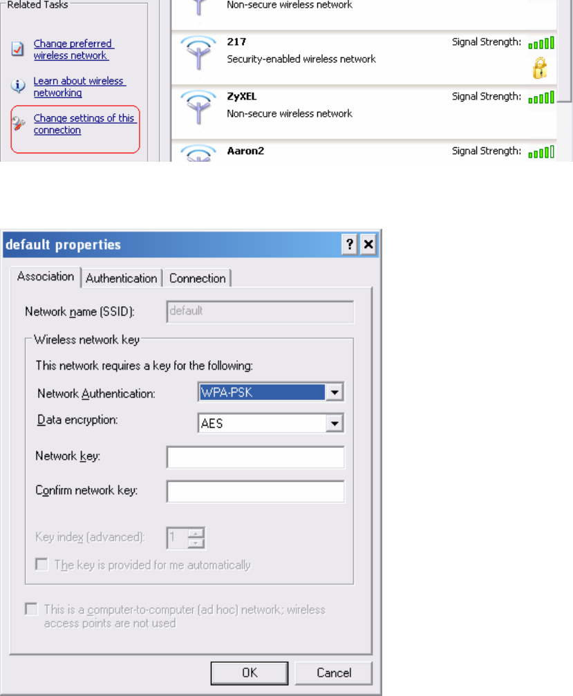 If SSID is default and click “Properties” to check if the driver of wireless client supports AES