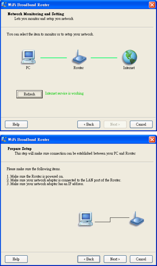 Whatever I setup, the pc can not get ip. Please check Status Led and refer to the Q2: