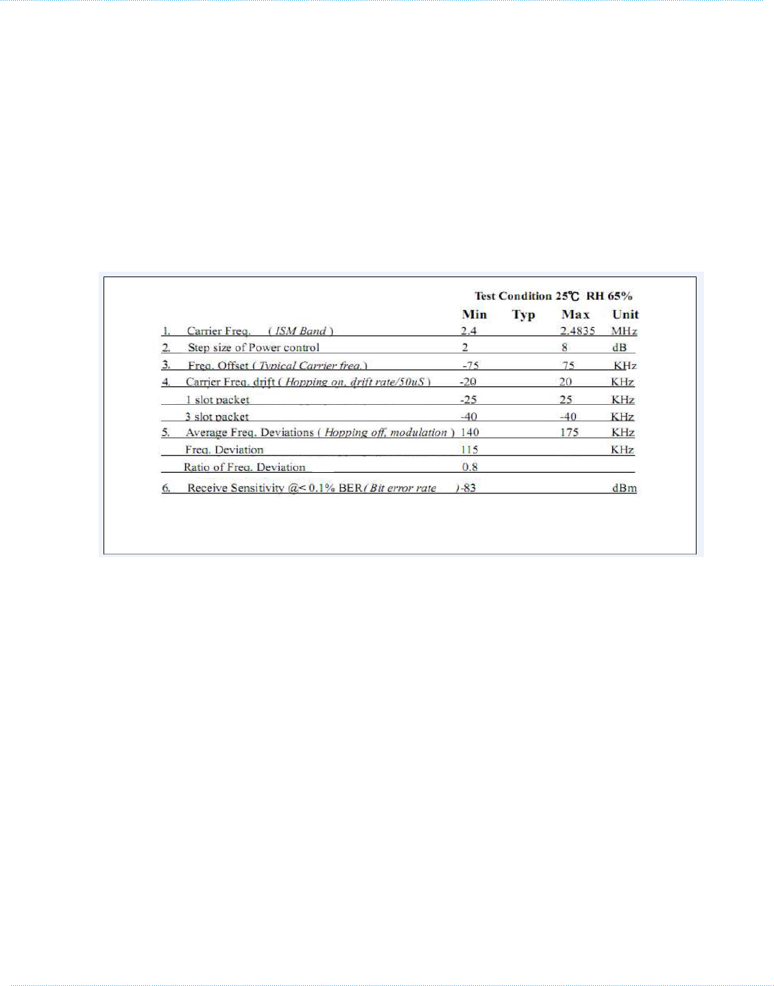 Has an EDR module; and the change range of modulation depth::2Mbps-3Mbps
