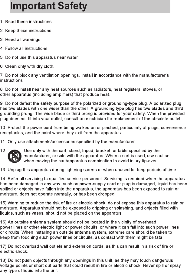 17) Unplug the product during lightning, storms or when it will not be used for long periods of