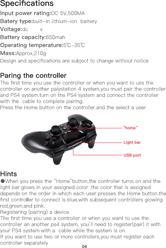 SHENZHEN KINGLINE TECHNOLOGY CO.,LTD Wireless controller Users manual