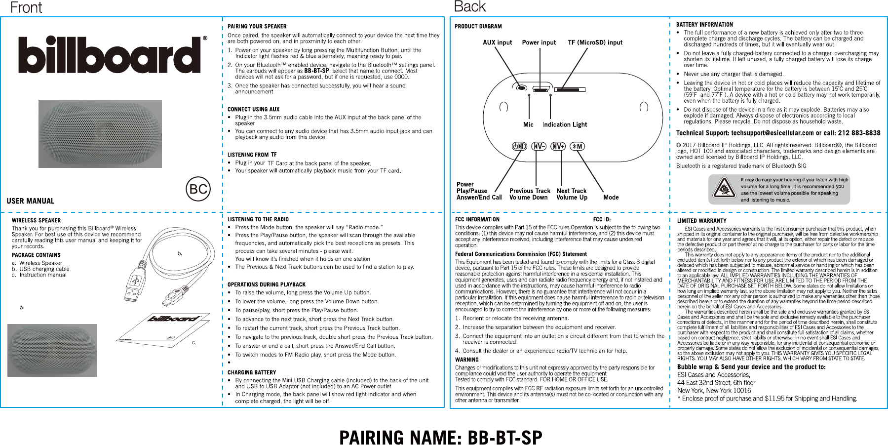KINGRAY ELECTRONICS Co., LTD BLUETOOTH SPEAKER BB141 manual 07 12 2017