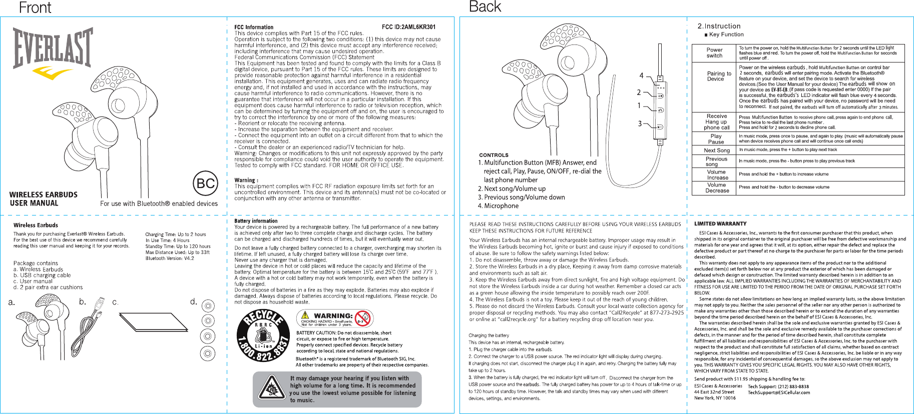 KINGRAY ELECTRONICS KR301 Wireless Earbuds User Manual EV6943 Manual 14 Feb 2019