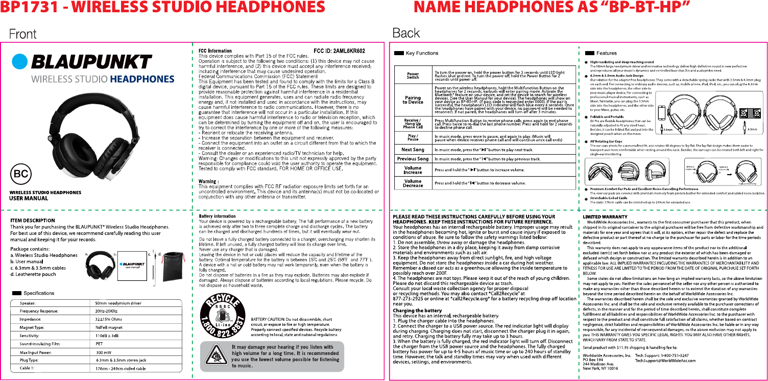KINGRAY ELECTRONICS KR602 Wireless Headphone User Manual