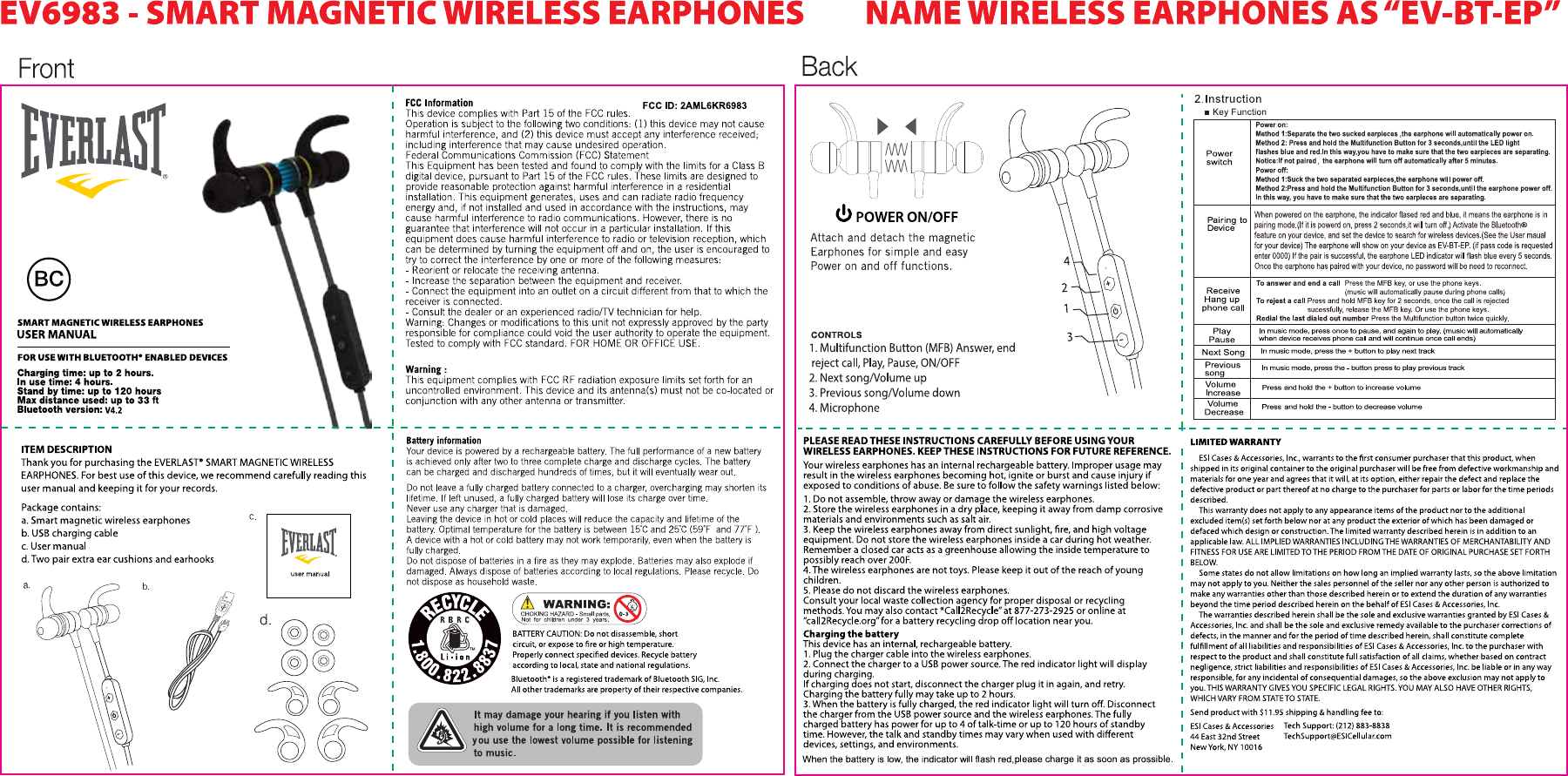 KINGRAY ELECTRONICS KR6983 Bluetooth earphone User Manual