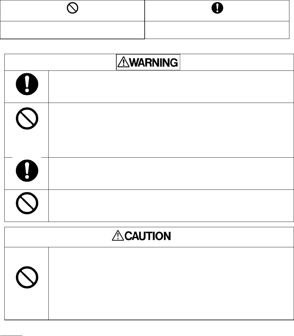 Indicates prohibited actions. Indicates actions that must be undertaken for safety