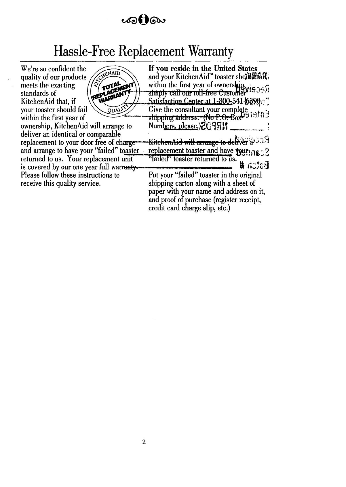 quality of our products/_ _ - _..,_"_ and your KitchenAid" toaster sho_a_'l_i