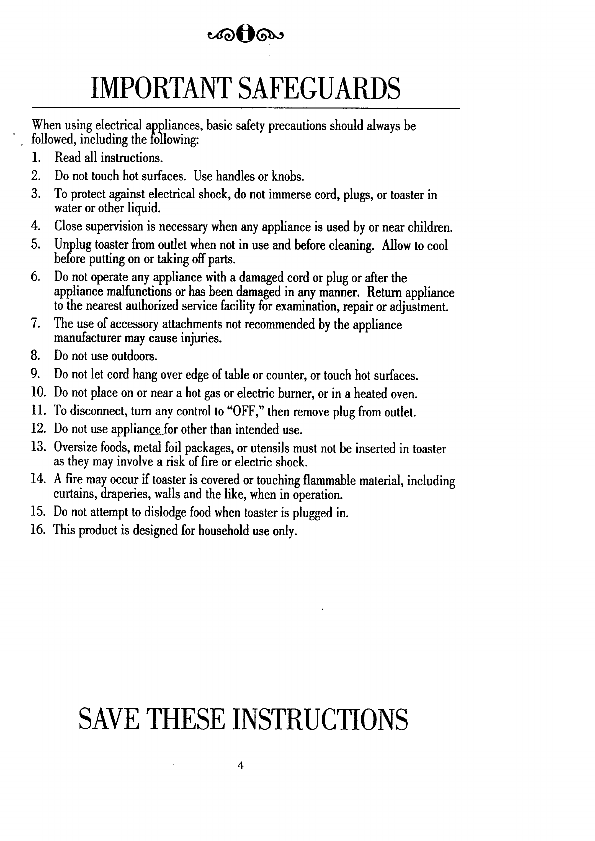 15. Do not attempt to dislodge food when toaster is plugged in.