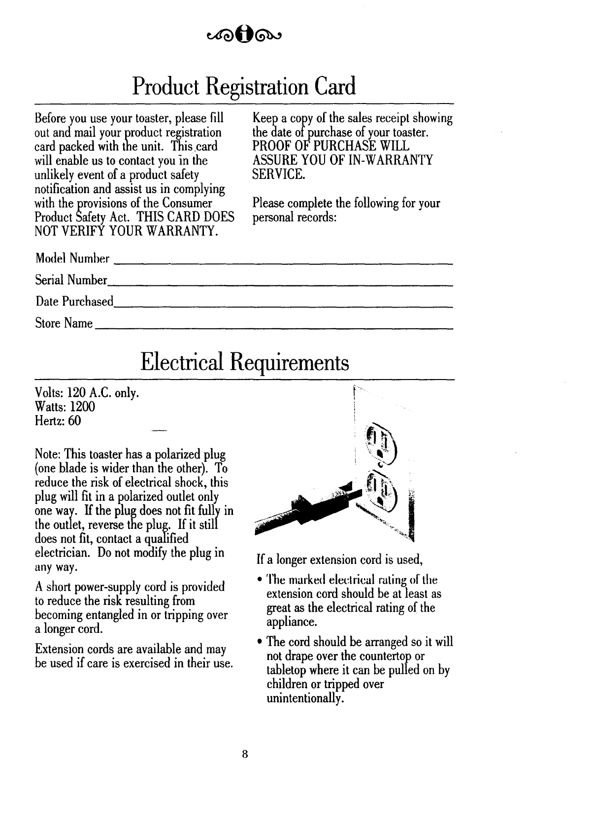 Product Registration Card ........................................................................................ 8