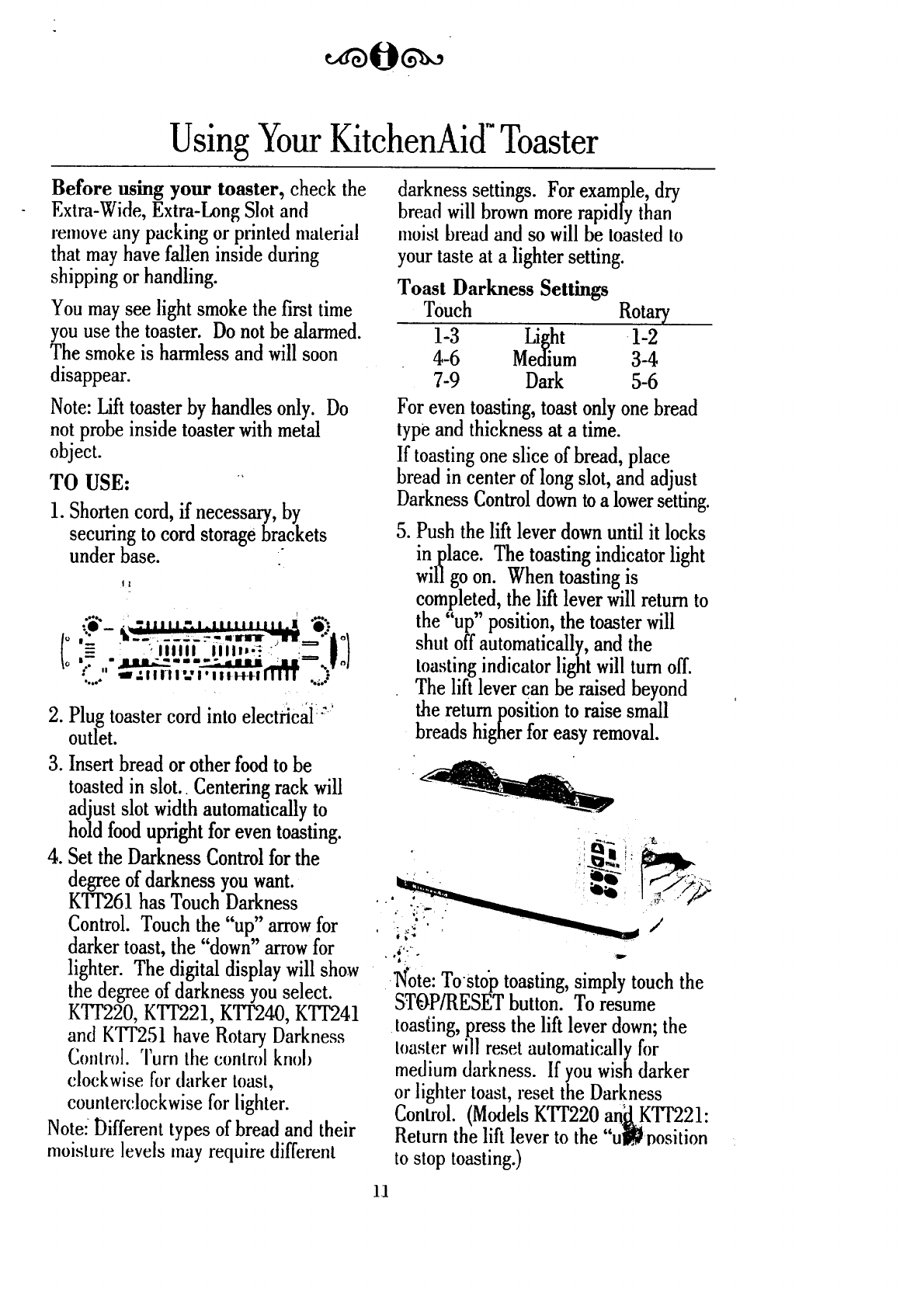 Using Your KitchenAid TM Toaster ............................................................................ 11