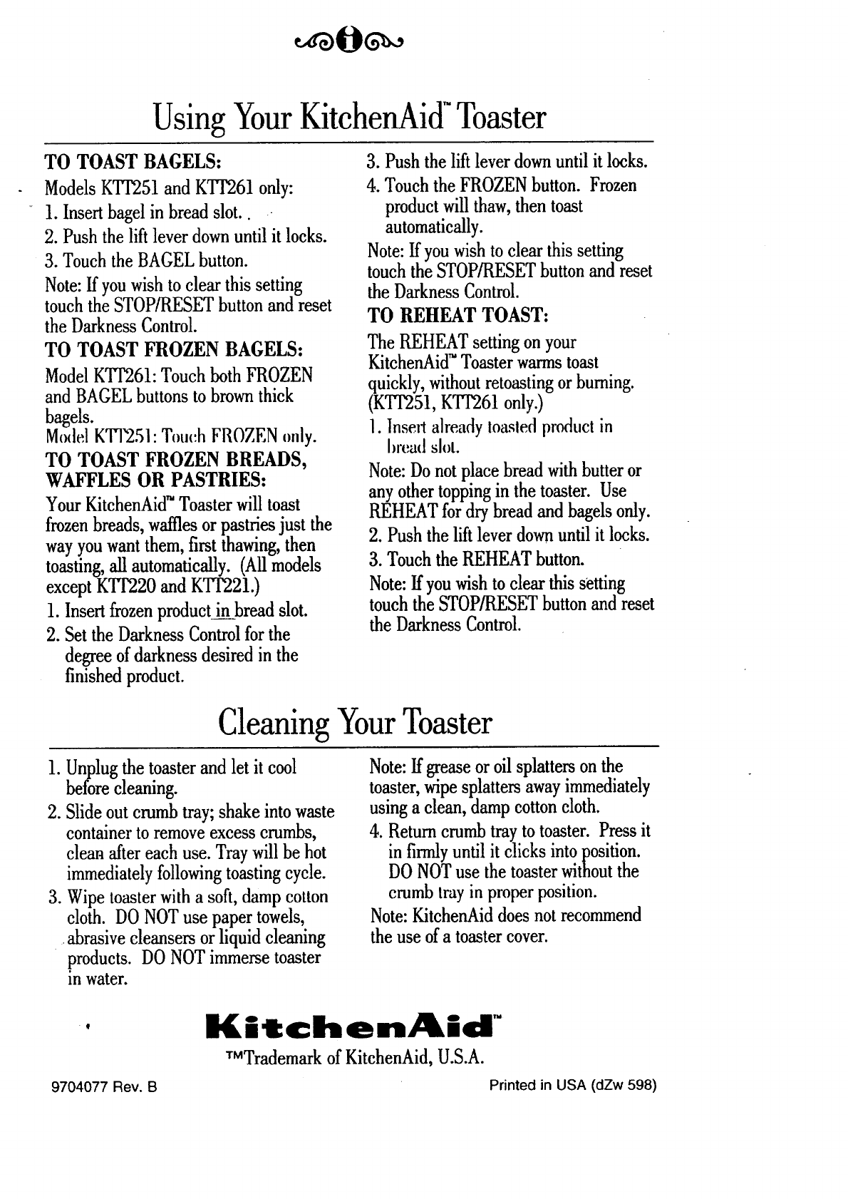KITCHENAID Toaster Manual 98100035